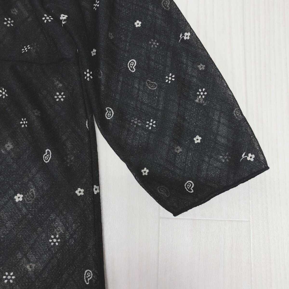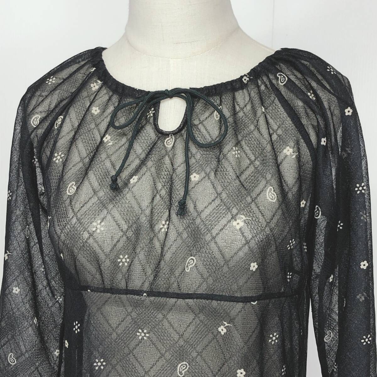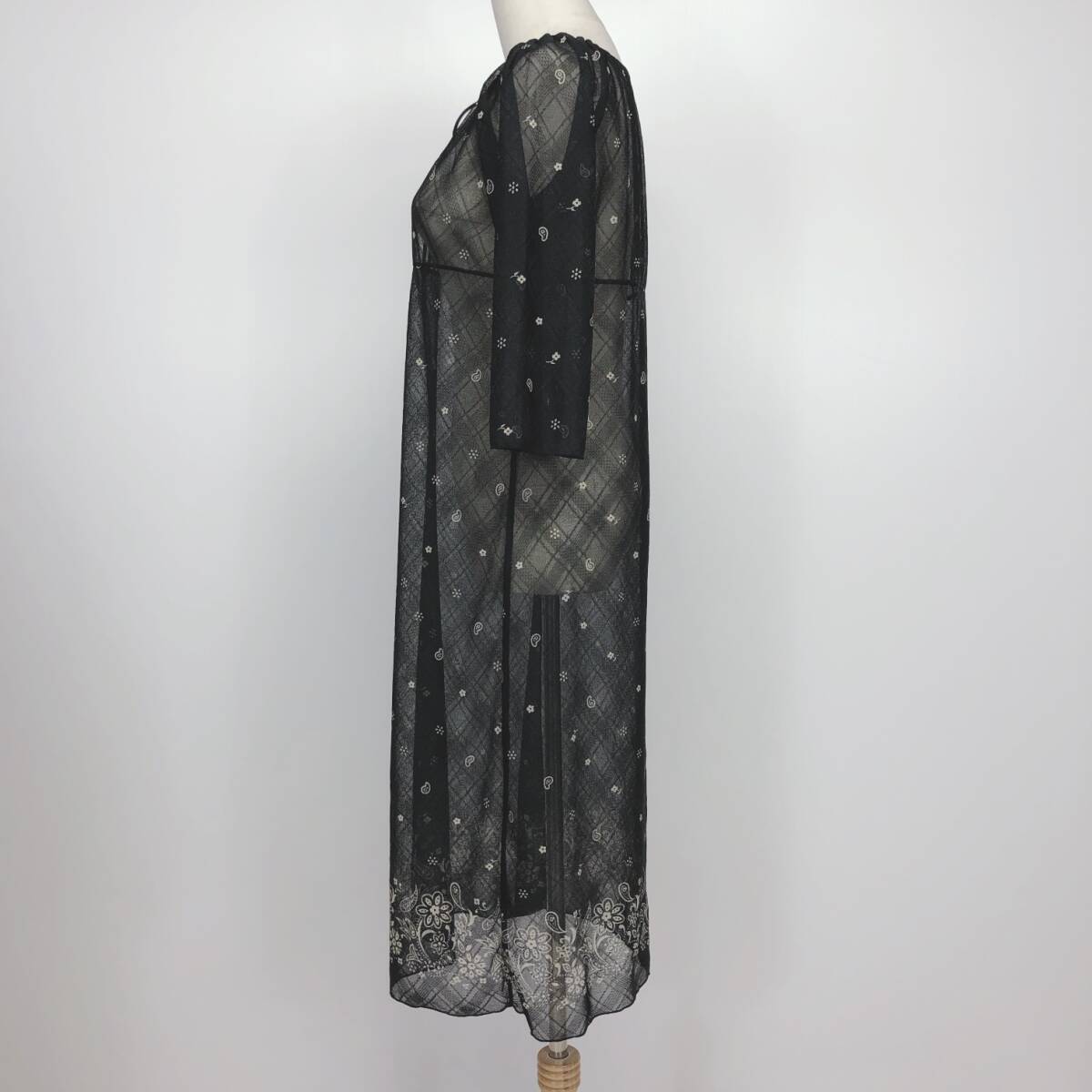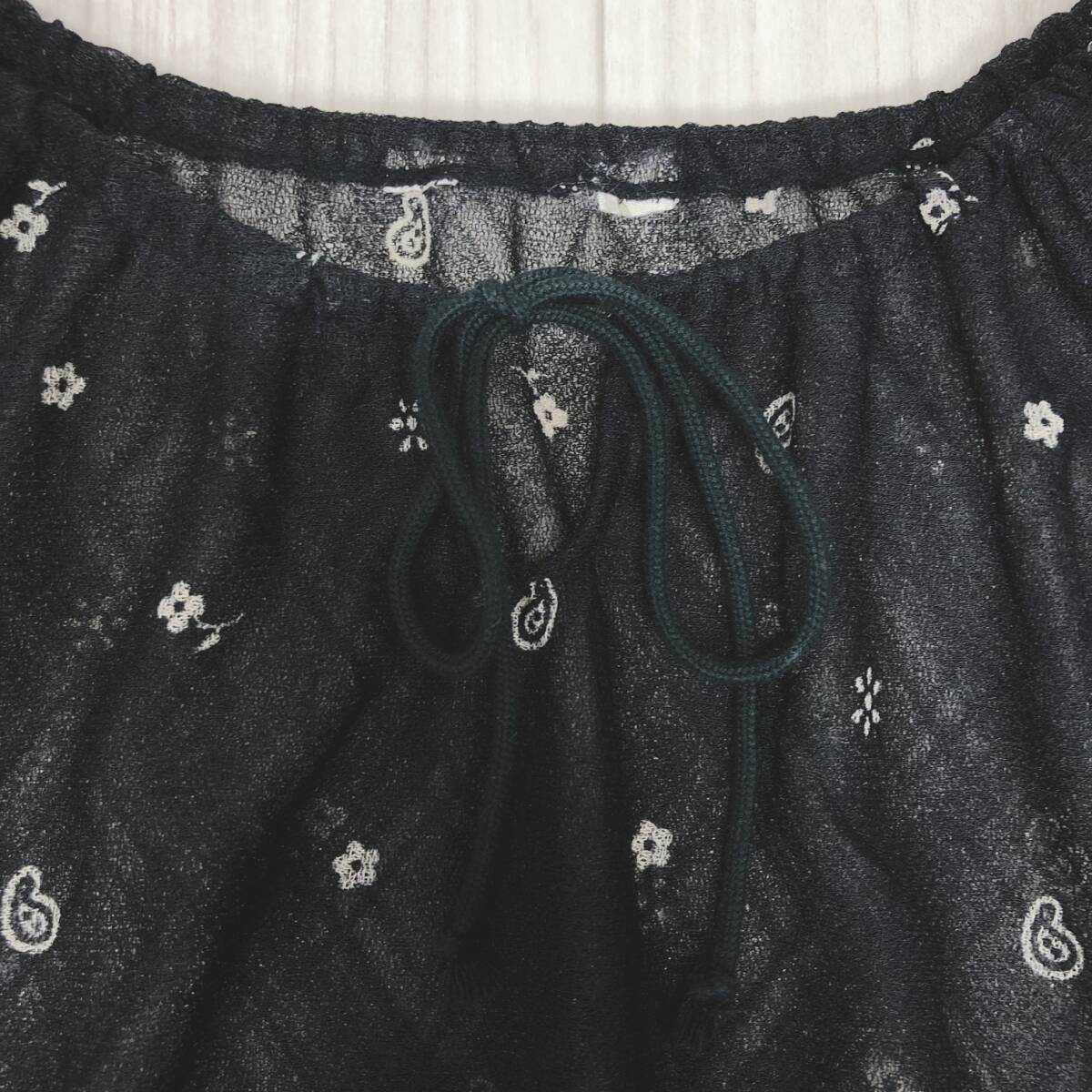 YX1103 美品 レディースワンピースひざ丈ワンピース膝丈薄手 紐付 レース シースルー サイズM ブラック 黒 花柄 シンプル シック 涼しげ 夏