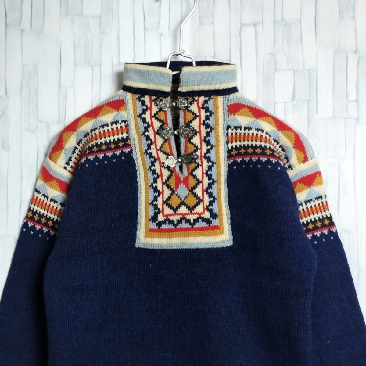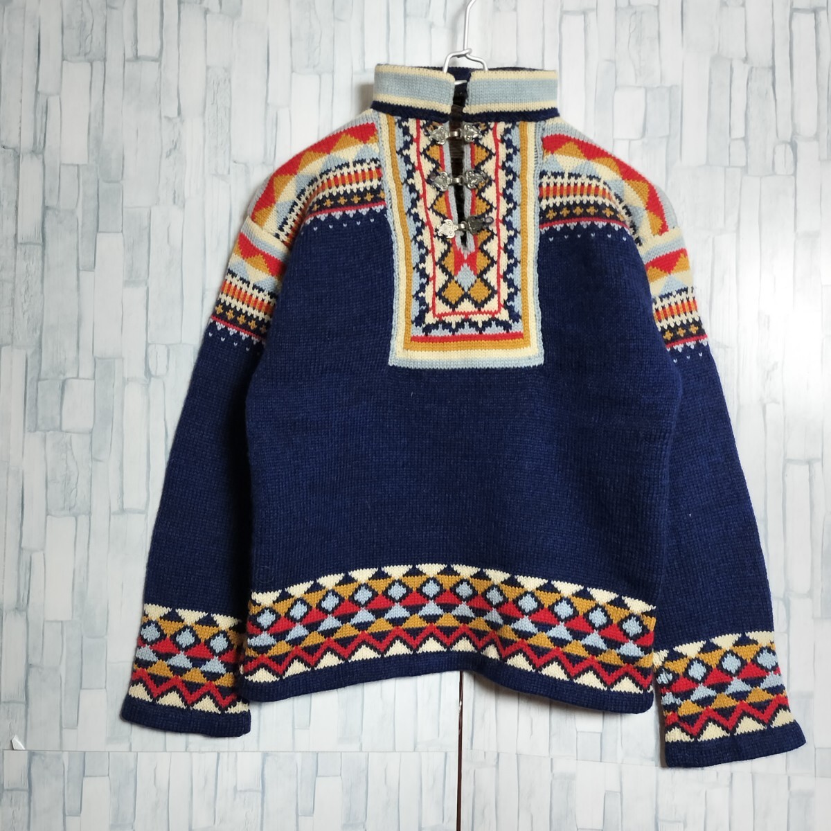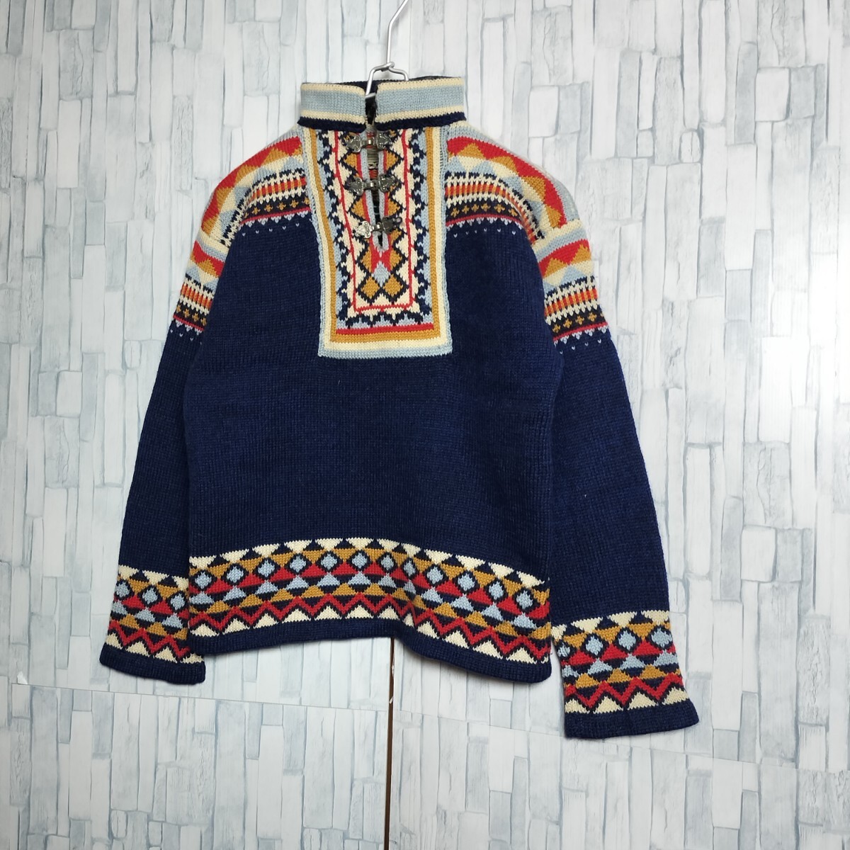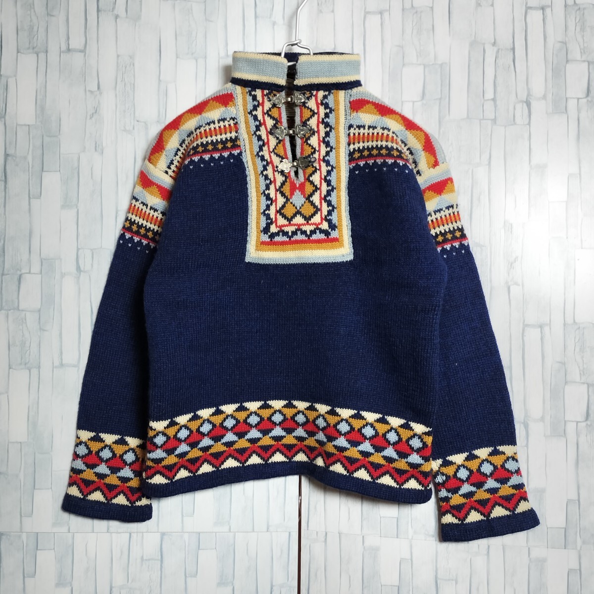 ■ ノルディックニット デンマーク製 メタルフック ノルウェーセーター 幾何学柄 ノルディック柄 フェアアイル ウール M 古着