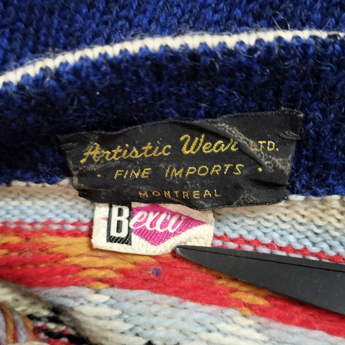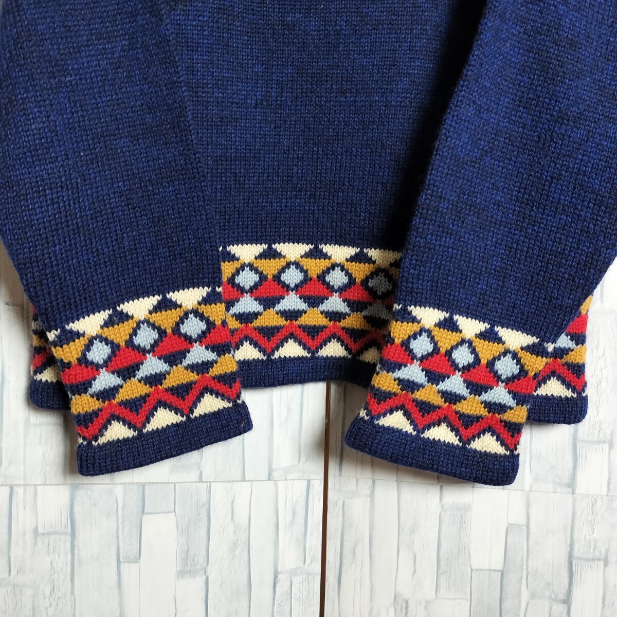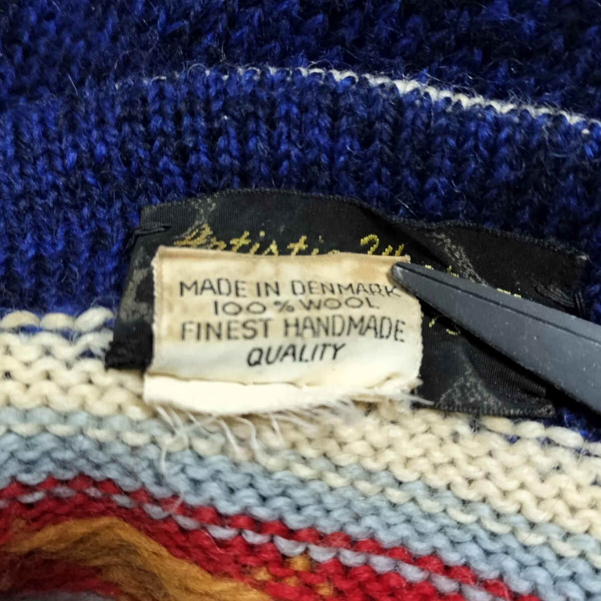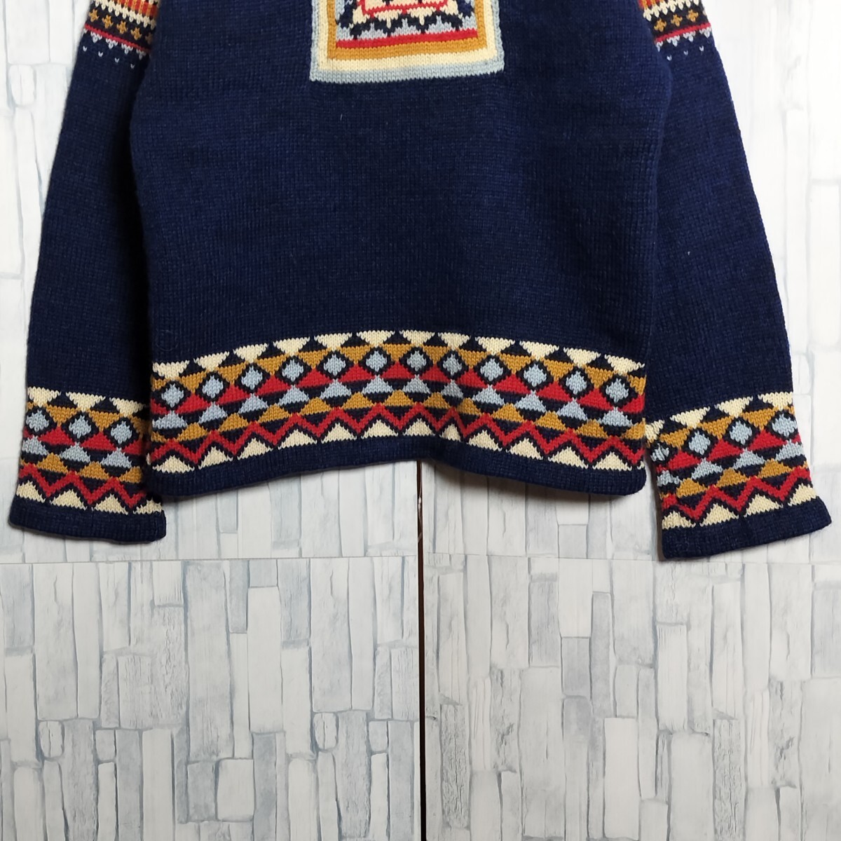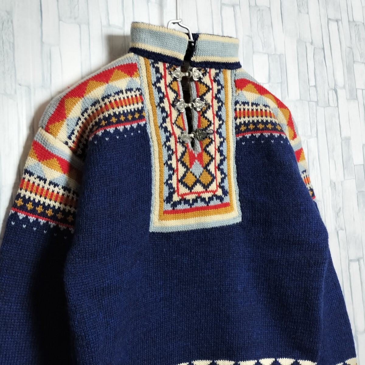 ■ ノルディックニット デンマーク製 メタルフック ノルウェーセーター 幾何学柄 ノルディック柄 フェアアイル ウール M 古着