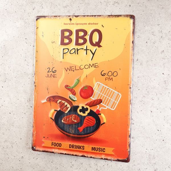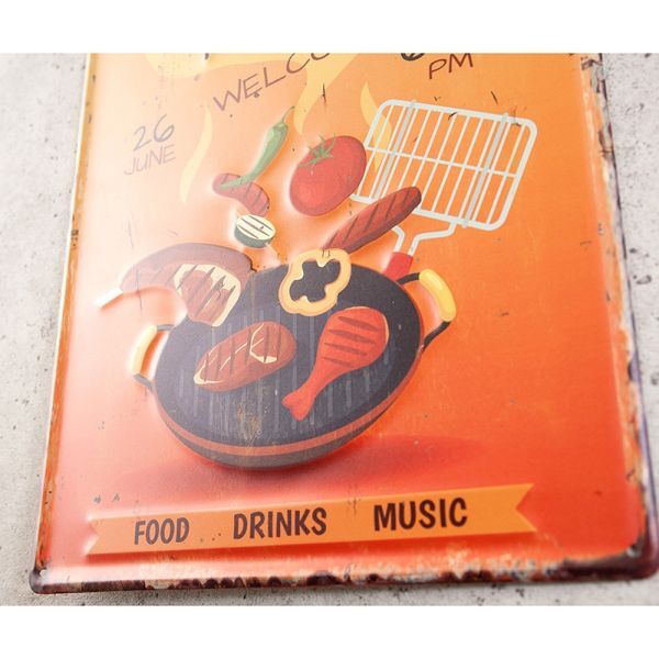 アンティークエンボスプレート バーベキュー BBQ アメリカン雑貨 店舗 壁掛 インテリア 飾り 雑貨 オブジェ かわいい おしゃれ