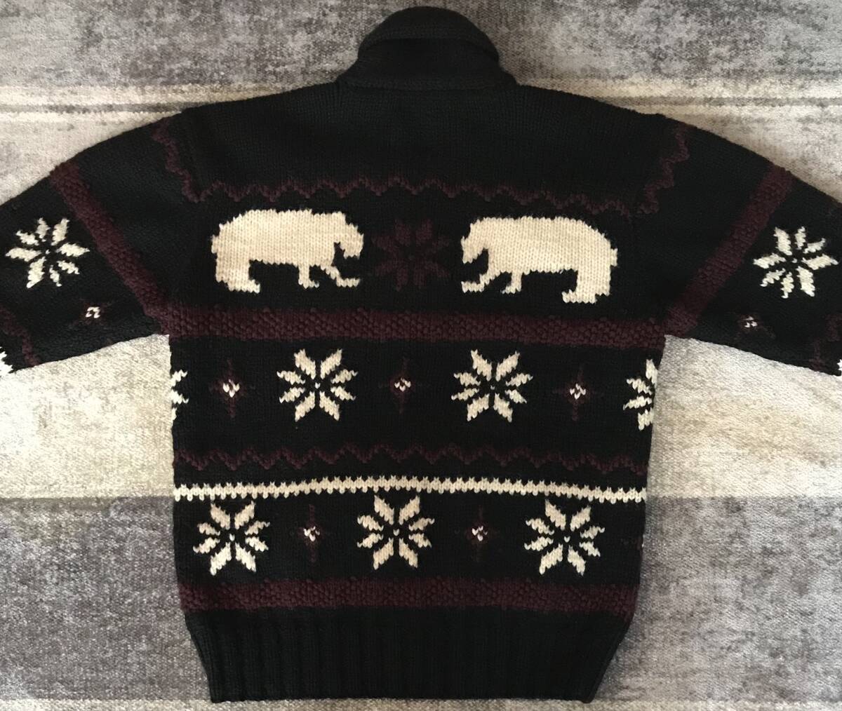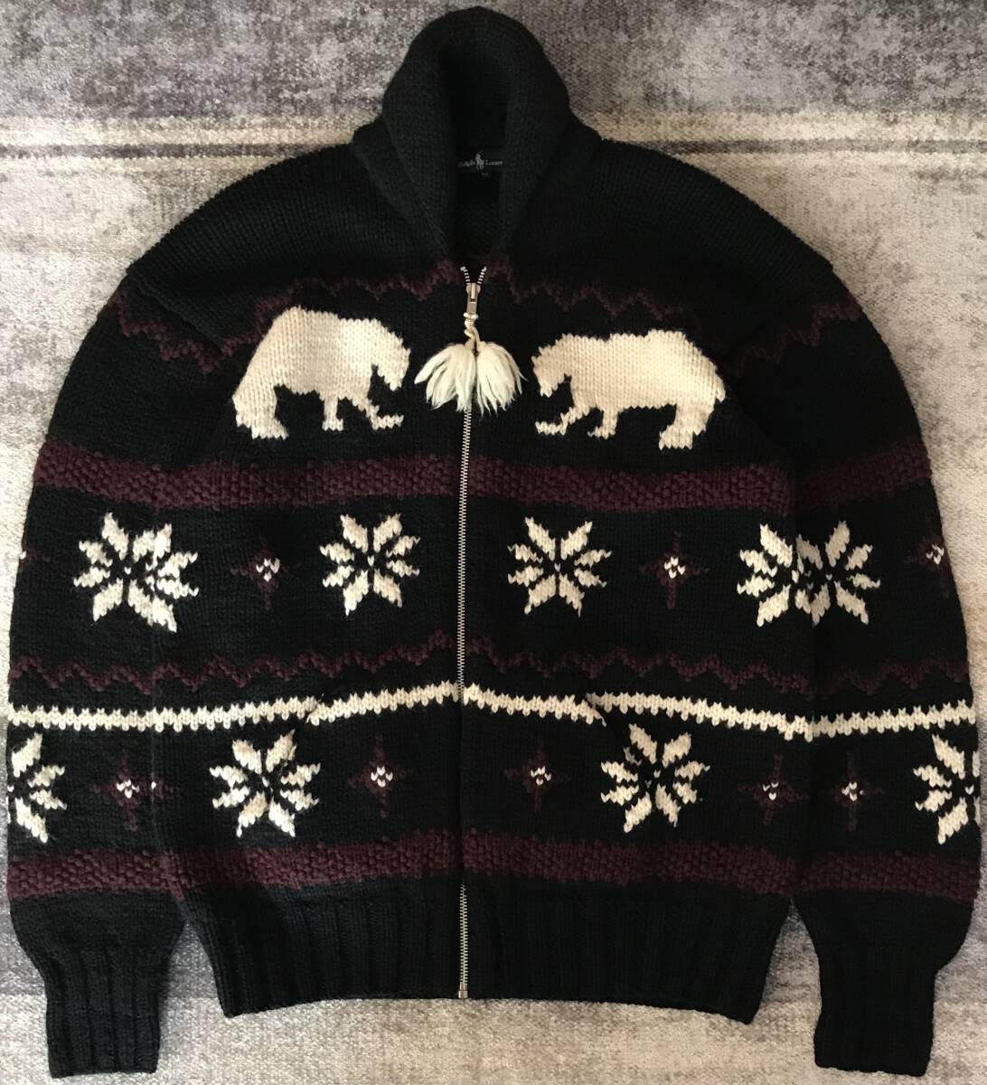 この機会に超レア、90 vintage、ラルフローレンのグリズリー柄カウチンニットジャケットを是非いかがでしょうか?