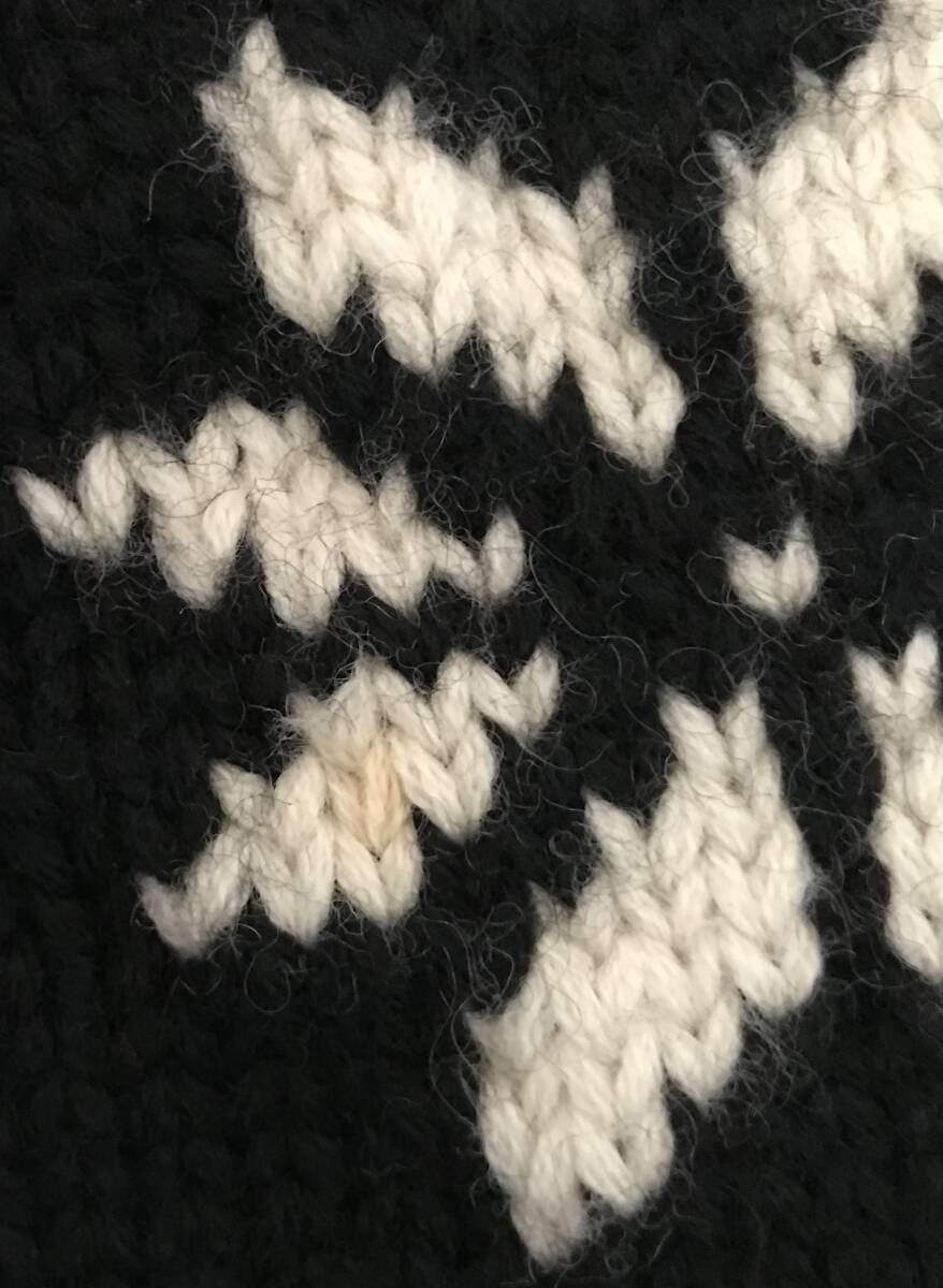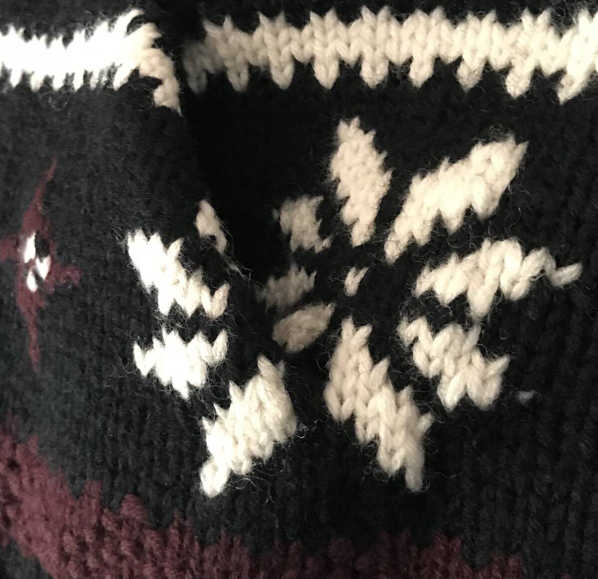 約30年前のvintageアイテムの為、多少使用感やくすみ、後右肩の雪柄部分に軽微な汚れ、その他全体的にニット素材特有の毛玉毛羽立ちや糸の飛び出し、元々の編みムラ等は見受けられますが、物が出てこない稀少品ですので、vintage古着慣れされている方でしたらまだまだご使用頂けます。