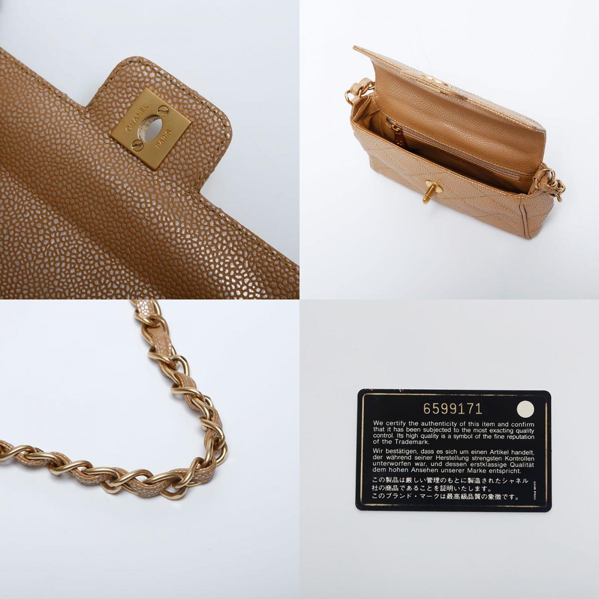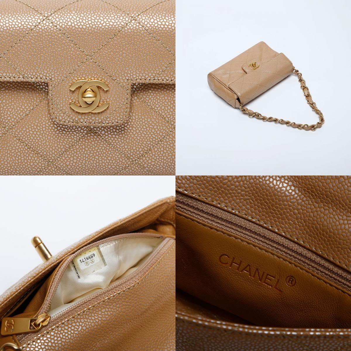 極美品 CHANEL 6番台 キャビアスキン メタリック ミニマトラッセ  18cm ハンドバッグ ベージュ
