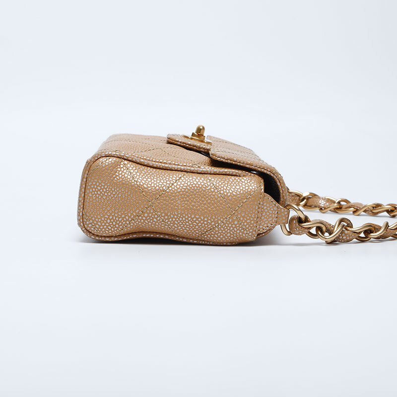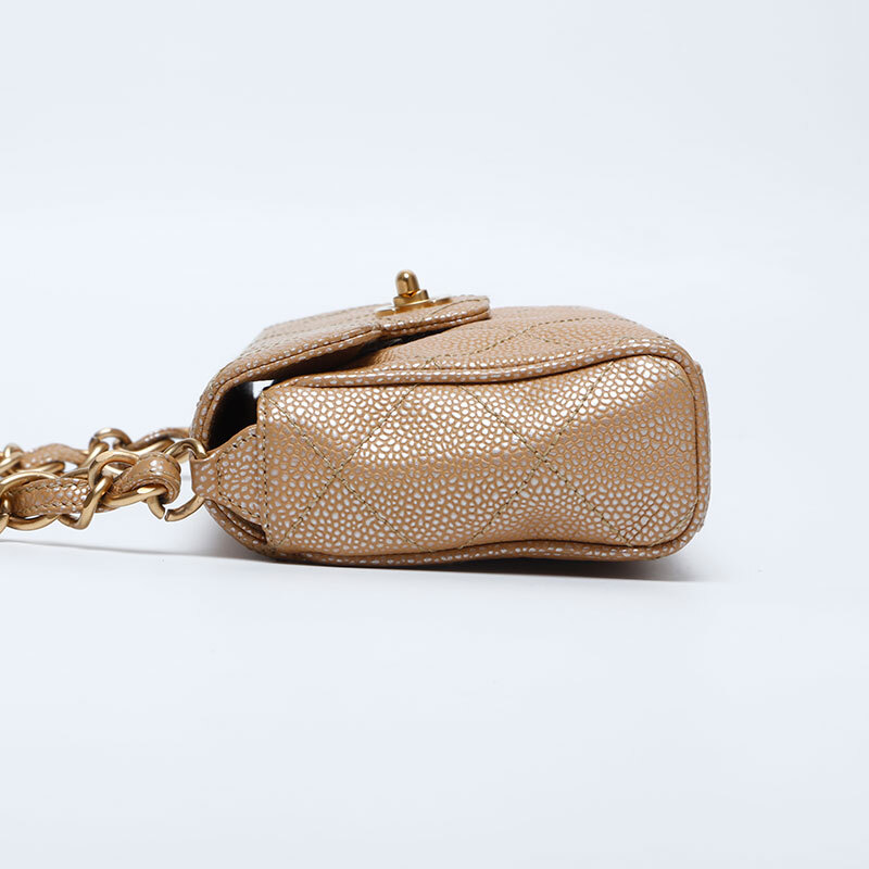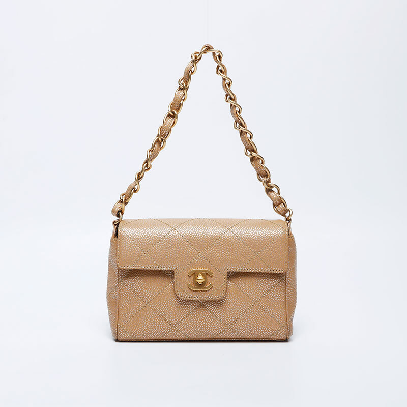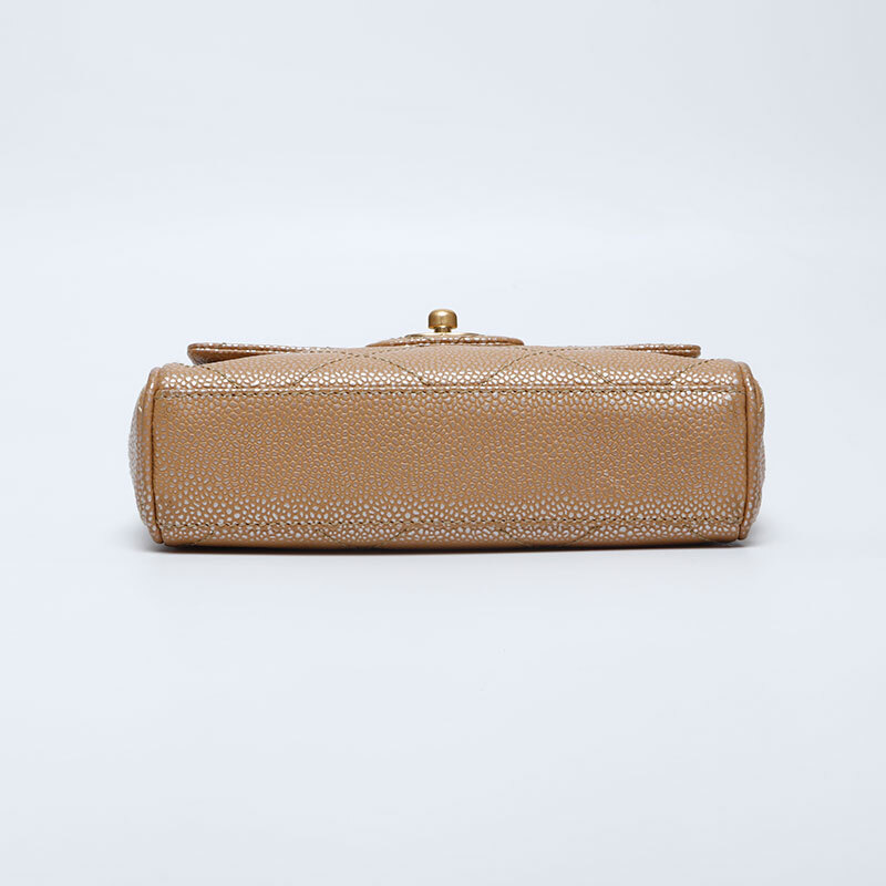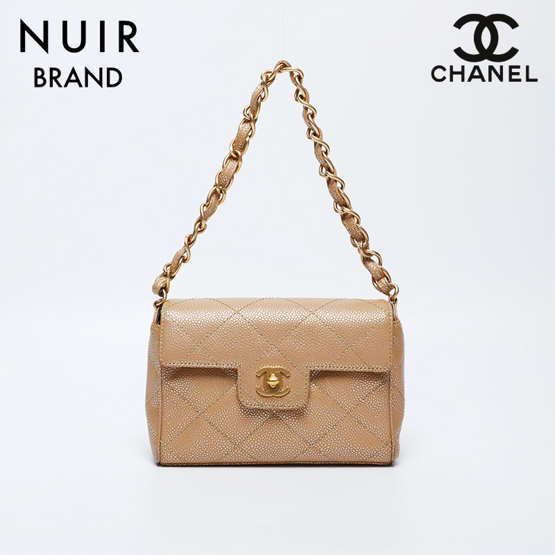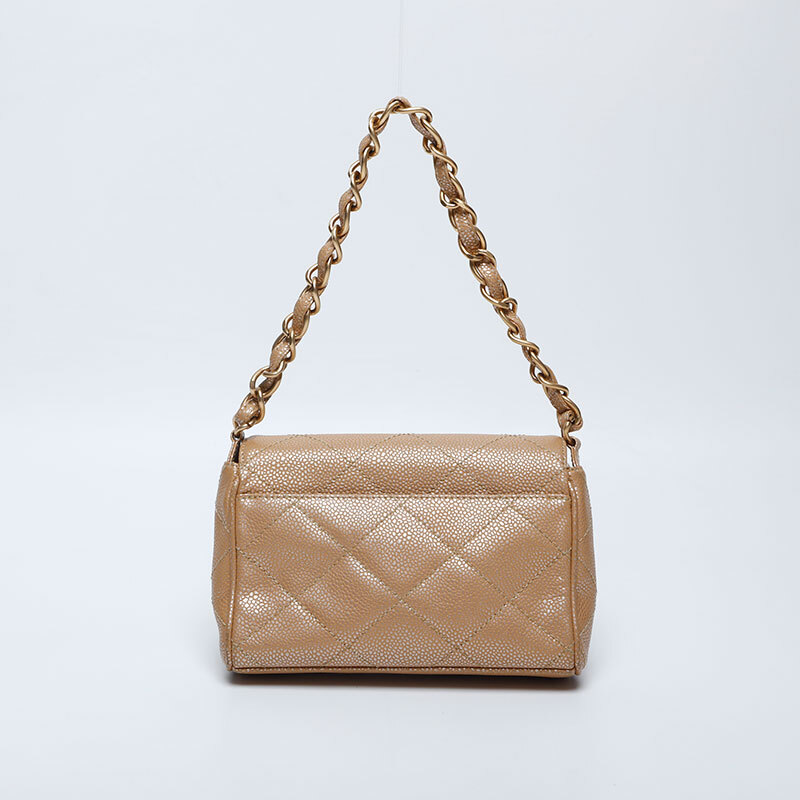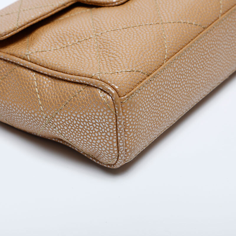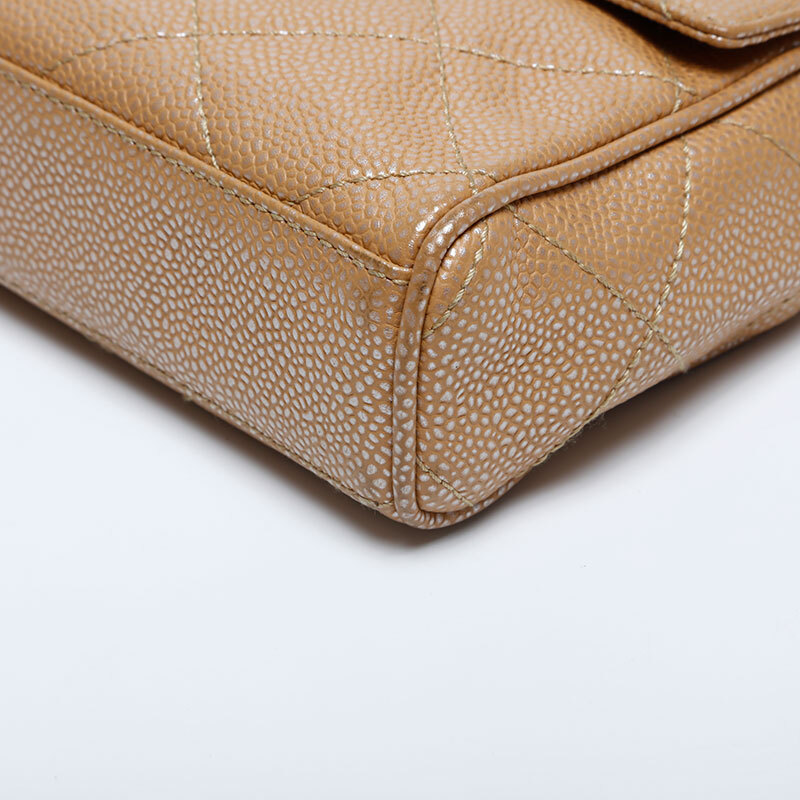 シャネル CHANEL ハンドバッグ 6番台 キャビアスキン メタリック ミニマトラッセ  18cm ベージュ