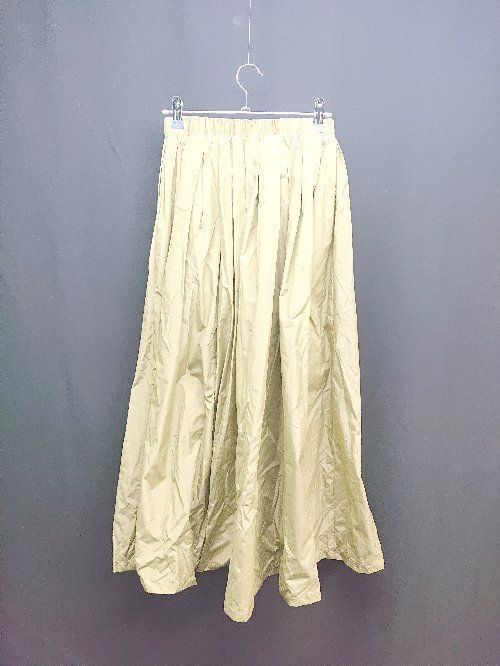 ◇ Libra Cue リブラ キュー シンプル シャカ生地 ロング フレア スカート サイズF グリーン レディース E