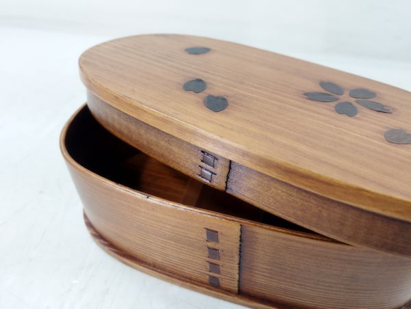 サ/ 曲げわっぱ まげわっぱ 弁当箱 小判 桜 仕切り付 /HY-0622
