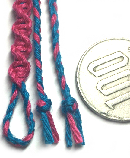 輪に分岐の1本を通し、もう一方と結んで留めるタイプです。