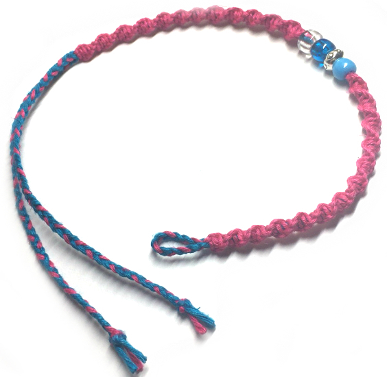 ヘンプを編んでブレスレット兼アンクレットにしました。