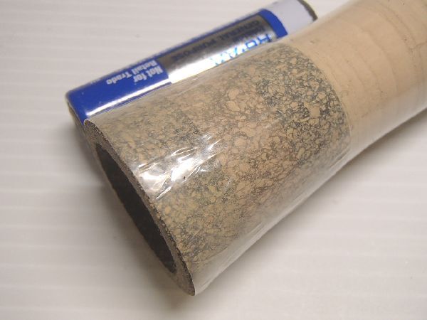 (注)これはAAAグレードのコルクにつき、ある程度のスがあります。画像ではスのほとんど無い上位グレードのコルクのように見えますが、それは表面全体に穴埋めのためのパテが塗られているためで、使用を始めるとそれが取れてスが現れます。ご注意ください。