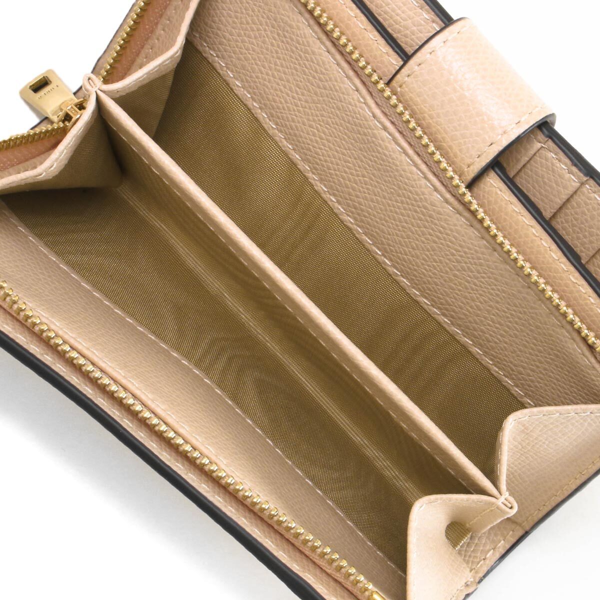 | 使用しているカーフレザーは上質で、キズや汚れに強い型押しが施されたハリのある質感が魅力。ライトゴールドファスナーとブランドロゴが美しく映えて、女性らしい華やかさを見せています。 | |