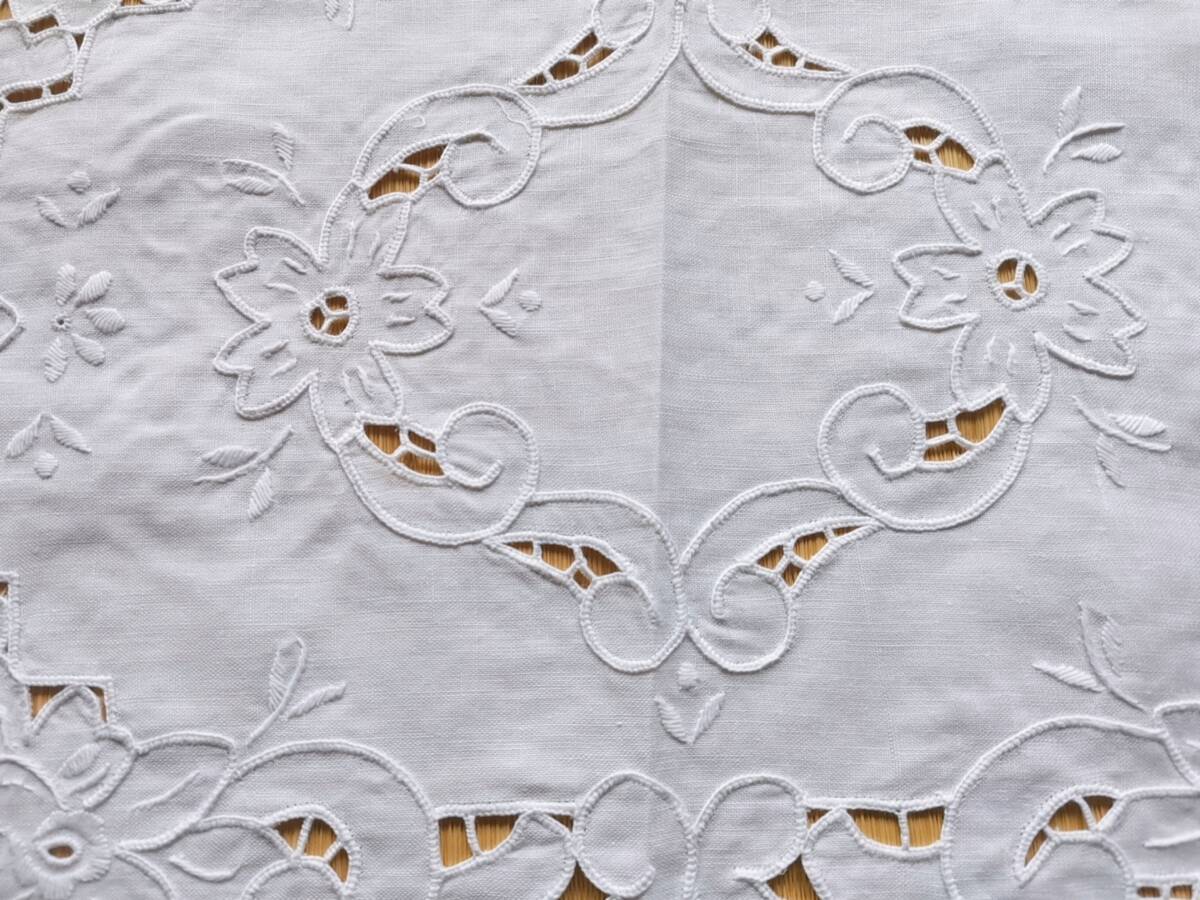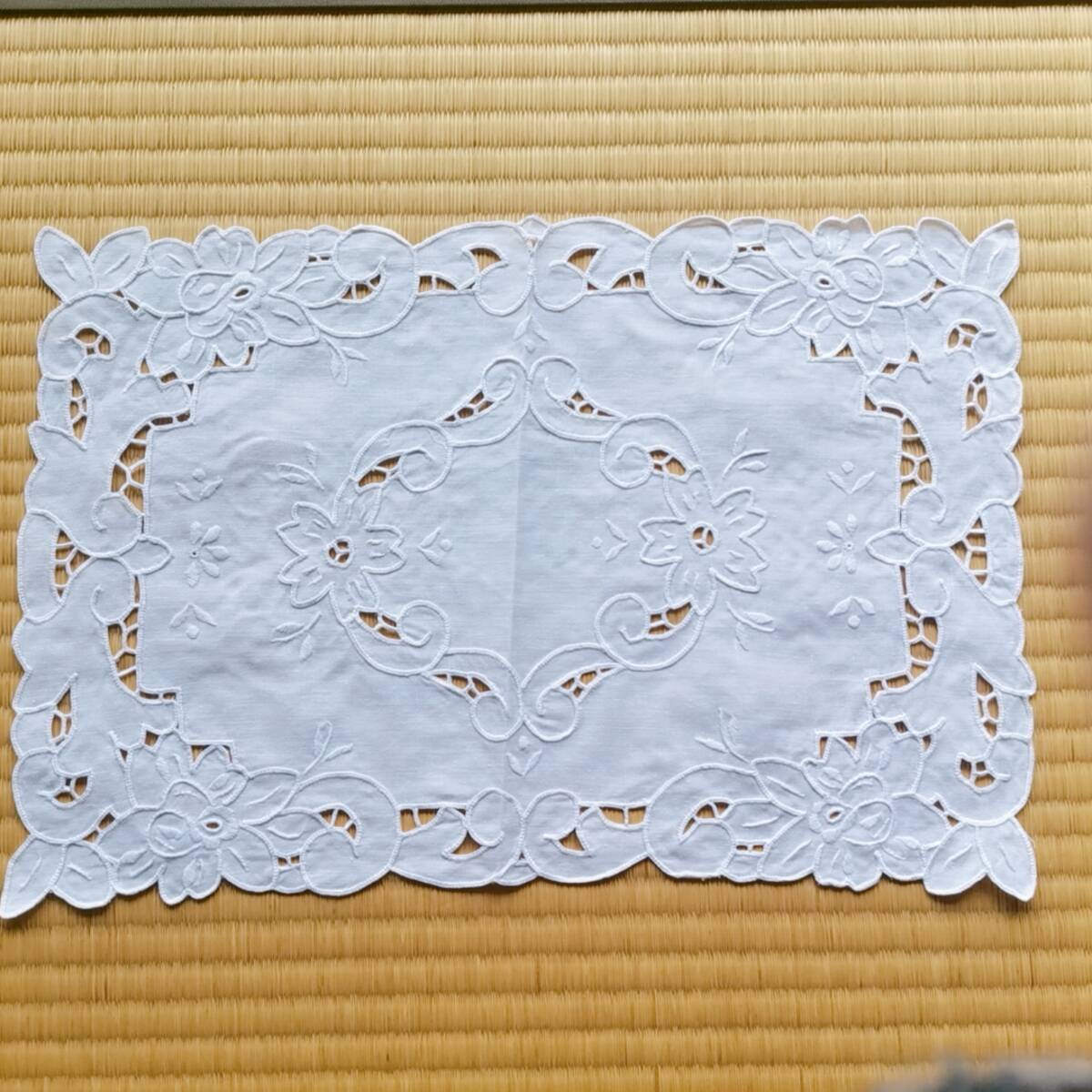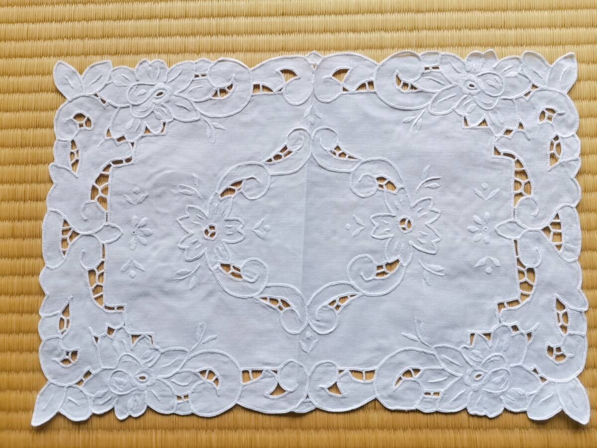 アンティークレース 上品 リネン 手刺繍 マルチカバー ティーマット ドイリー