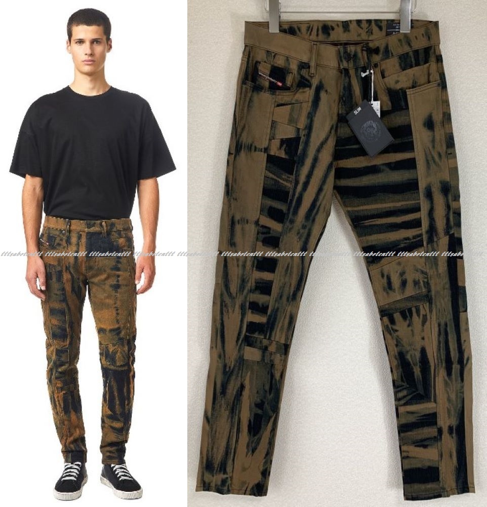 定価74,800円 DIESEL “D-STRUKT-T-SP” 09B34_STRETCH SLIM パッチワーク タイダイ染め デニム パンツ 28 ディーゼル 21A/Wルックモデル