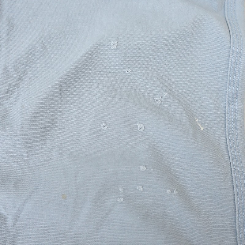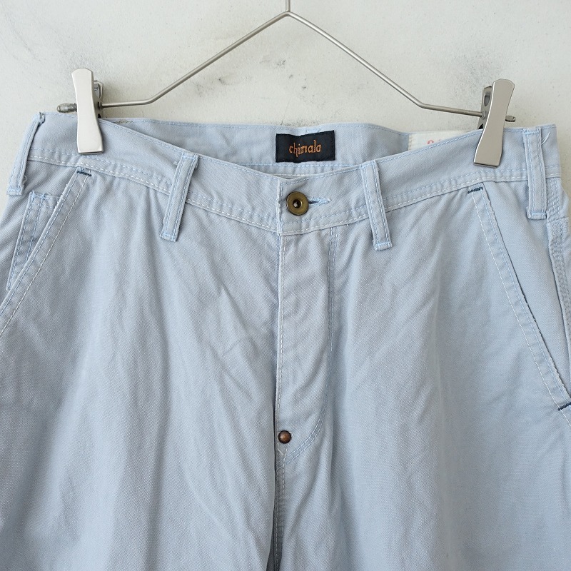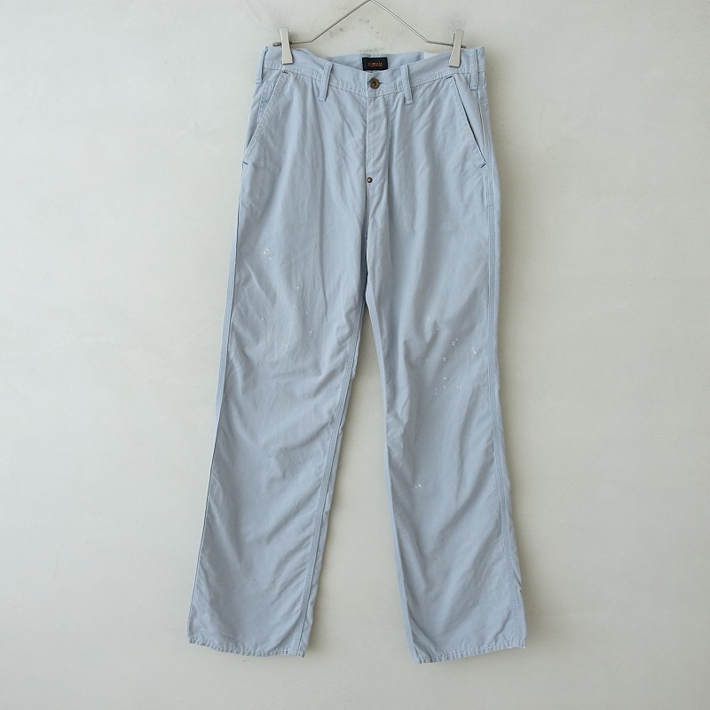 chimala×JOURNAL STANDARD LUXEのダメージストレートパンツです。カラーはフェード感のあるサックスブルーです。コットンの程よいハリがあるキャンバス風の平織り生地を使用。透け感はございません。ユーズド・ダメージ・汚れ・ペイント加工が施されております。ボタンフライに5ポケット仕様です。 |