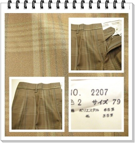 | 商品説明 | サイズ: W-79cm 平置実測採寸: ウエスト:79cm 渡り幅: 35cm 腿幅(股下 10cmの所):22,3cm 裾幅: 22cm 前股上: 28,5cm 股下(フリー状態): 91,5cm 色: スモークブルー&キャメル&ベージュ プレーンチェック 状態:新品素材: 毛 35% ポリエステ 65%日本製 上品 アーバンティなプレーンチェック柄 ウールのソフト感 生地は秋冬。 オシャレパンツ 穿きやすいタック有の2タックスタイル Yポケデザインです。 |