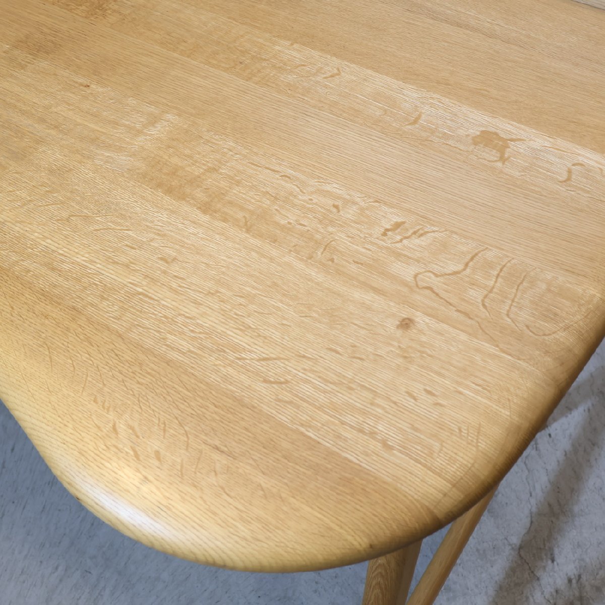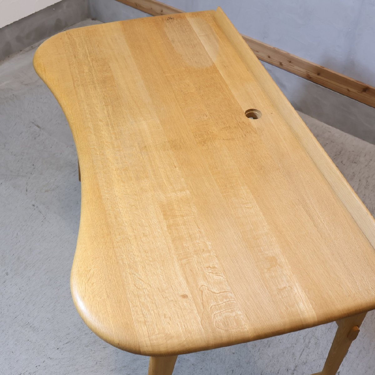 丸みのあるフォルムが特徴的で、木の素材感を感じられるデザインが魅力的な平机です。