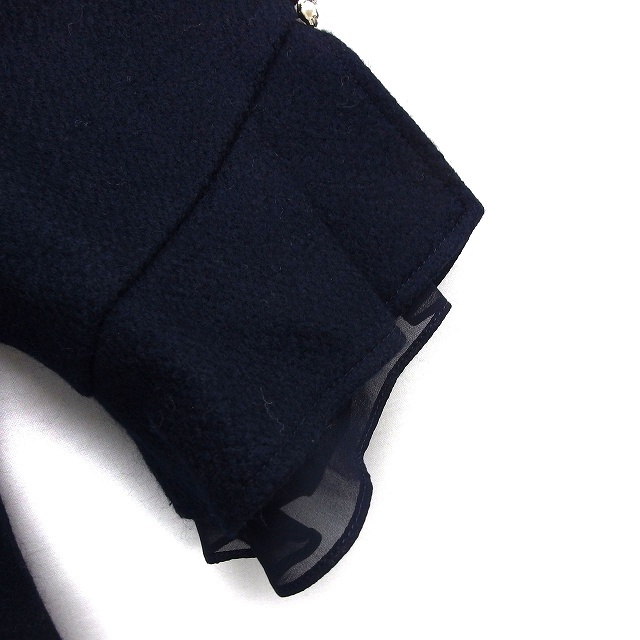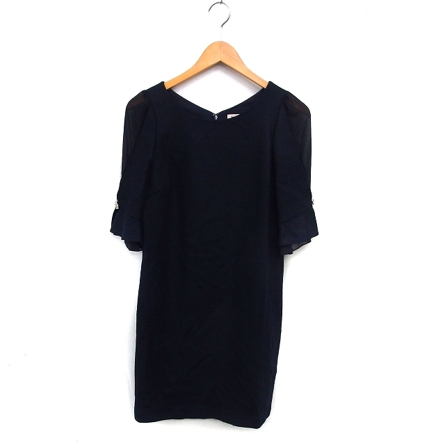 アプワイザーリッシェ Apuweiser-riche ワンピース シフォン Iライン ミニ ウール 五分袖 バックジップ ラウンドネック 2 黒 ブラック
