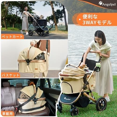 Angelpet ペットカート 分離型 犬用 バギー いぬ用 4輪 前輪360°回転 後輪ブレーキ付き 組み立て簡単 コンパクト