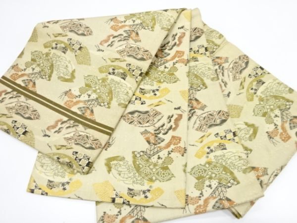 ys7290048; 地紙に鶴・花模様織り出し丸帯(材料)【アンティーク】【着】