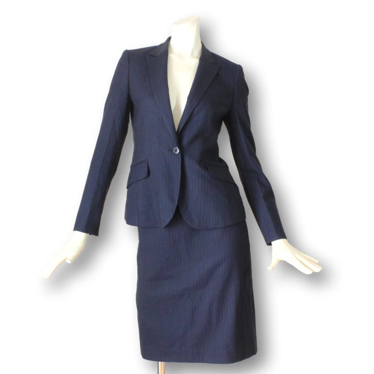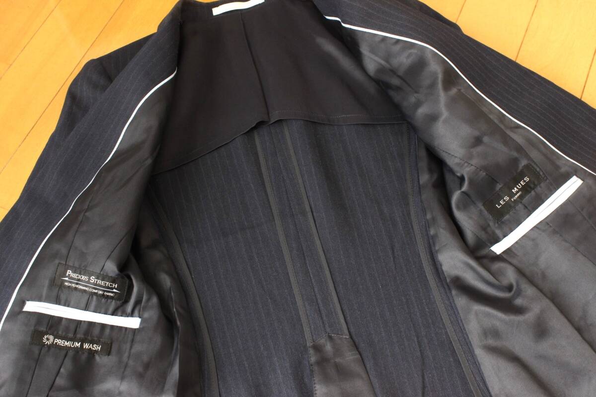 11【極美品】レミュー スカートスーツ 上3S 下S ★未使用に近い★ ネイビー 紺 3号 7号 WASHABLE tqe どこから見てもキレイ LES MUES Femme