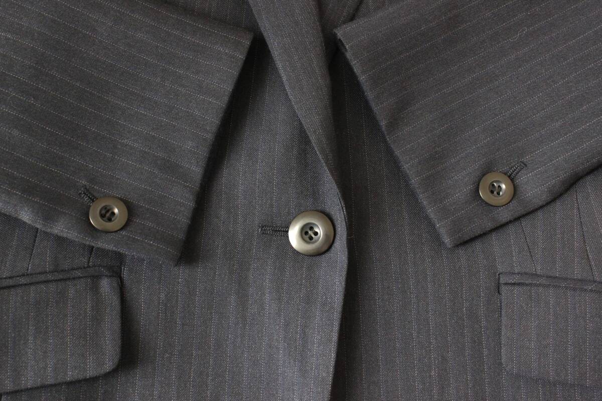 ジャケットは,1つボタン・背抜き仕立て・センターベント・内ポケット2つ付き・袖ボタン本開き