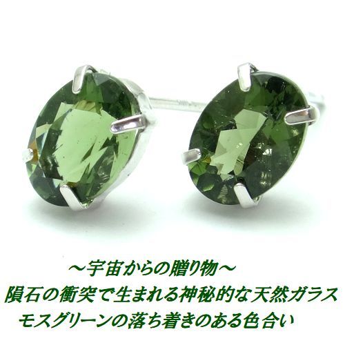K10WG/YG モルダバイト オーバル 5×7 ピアス ジュエリー パワーストーン 隕石 天然ガラス 10金 選べるゴールド 箱付き