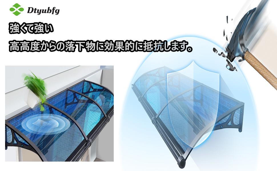 【耐久性のある素材】- 高級ABSとポリカーボネート素材で、耐熱性と耐寒性があり、変形しにくいです。ポリカーボネート中空シート、アルミニウム固定バーは軽量、防錆、高強度、長寿命で、これを強力に維持できます。 キャノピー。