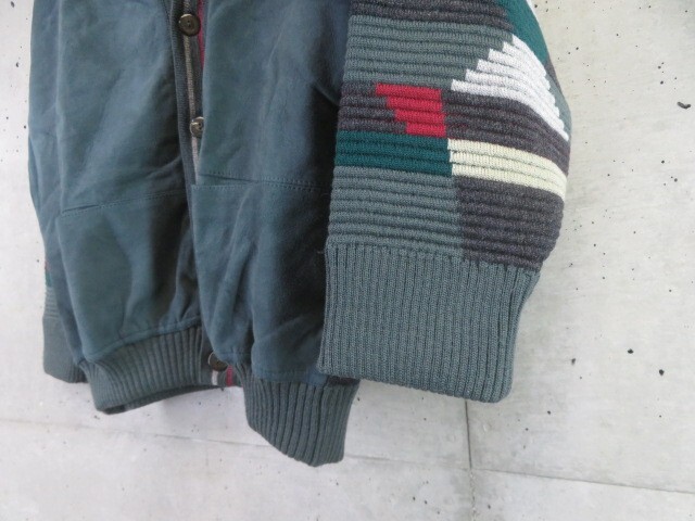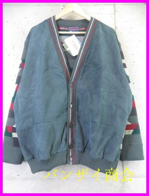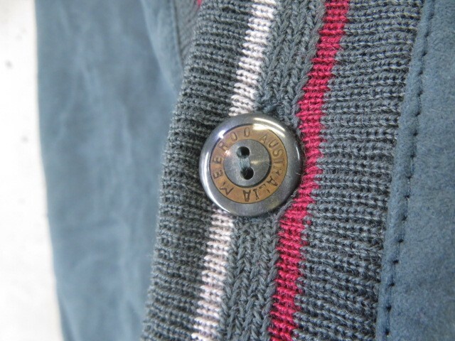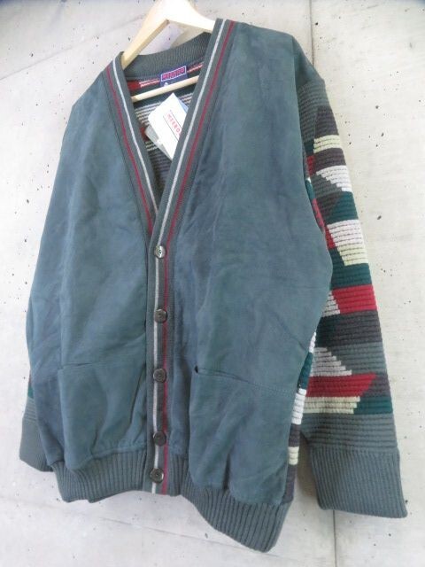 商品名オーストラリア製◆MEEROO 本革スエードレザー 3Dニット 立体編み ウールニットカーディガン