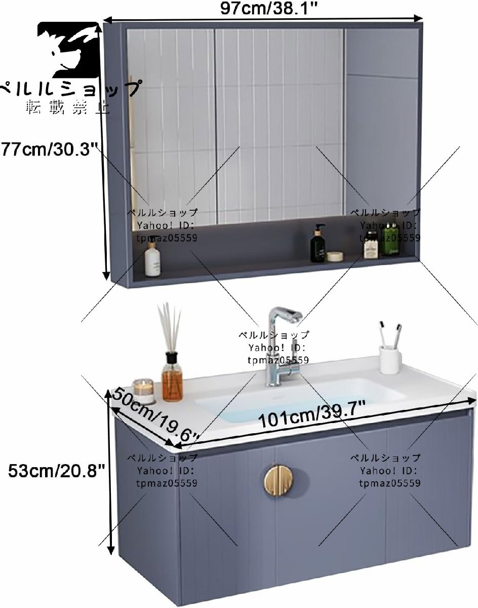 シンクキャビネットのサイズ: 101x50x53cm/39.7インチx19.6インチx20.8インチ。