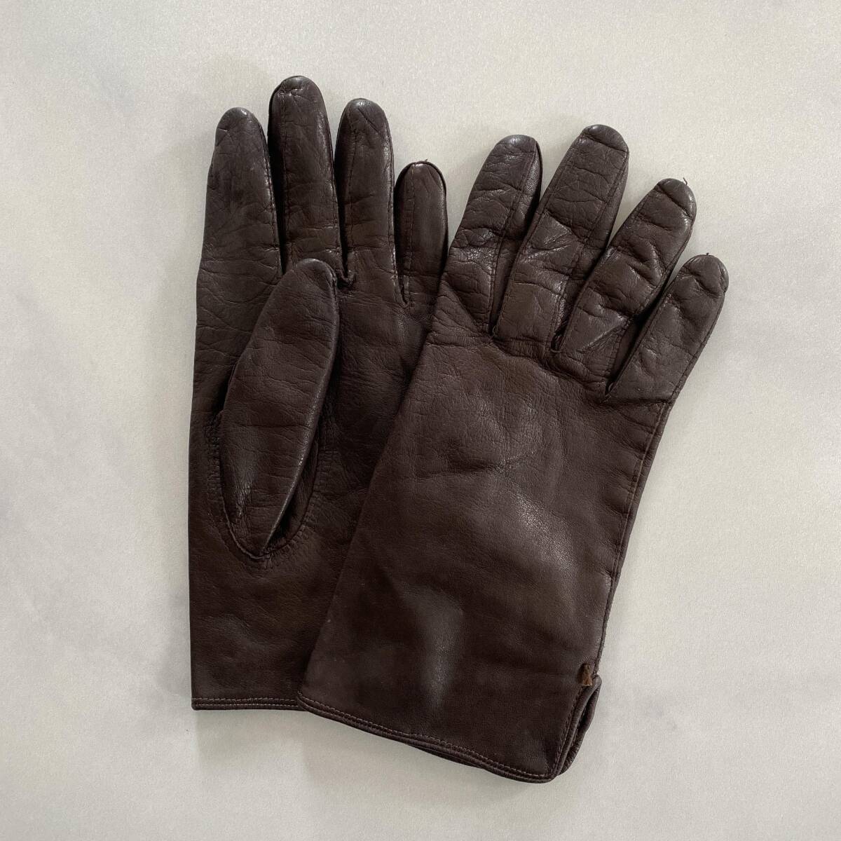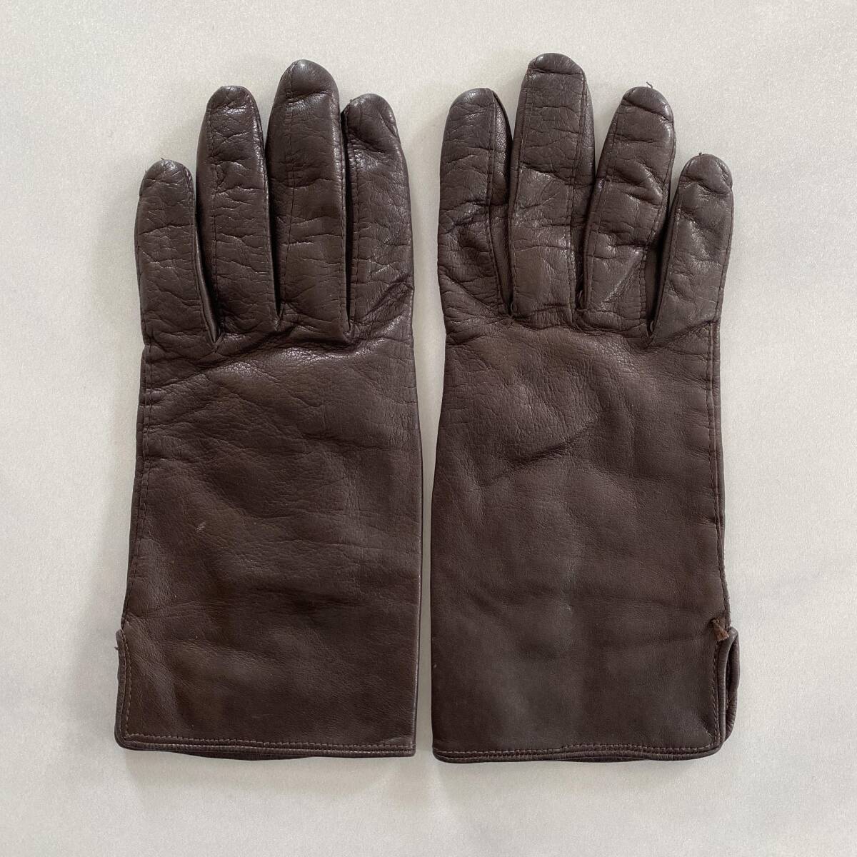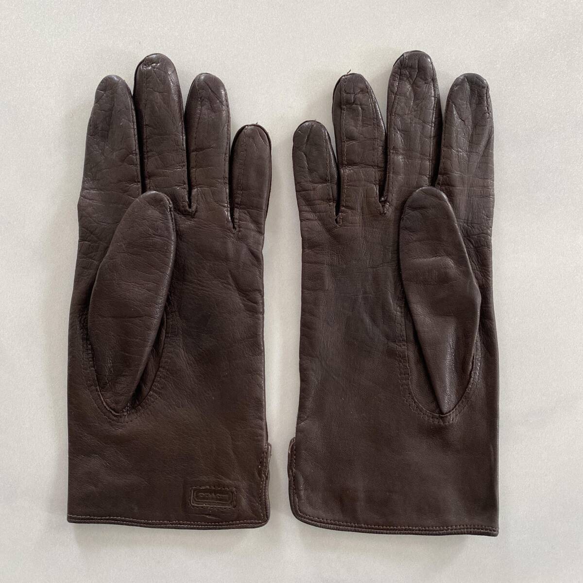 【ユーズド】COACH コーチ レディースサイズ レザーグローブ ダークブラウン 革手袋 サイズ7 シルク裏地 イタリア製