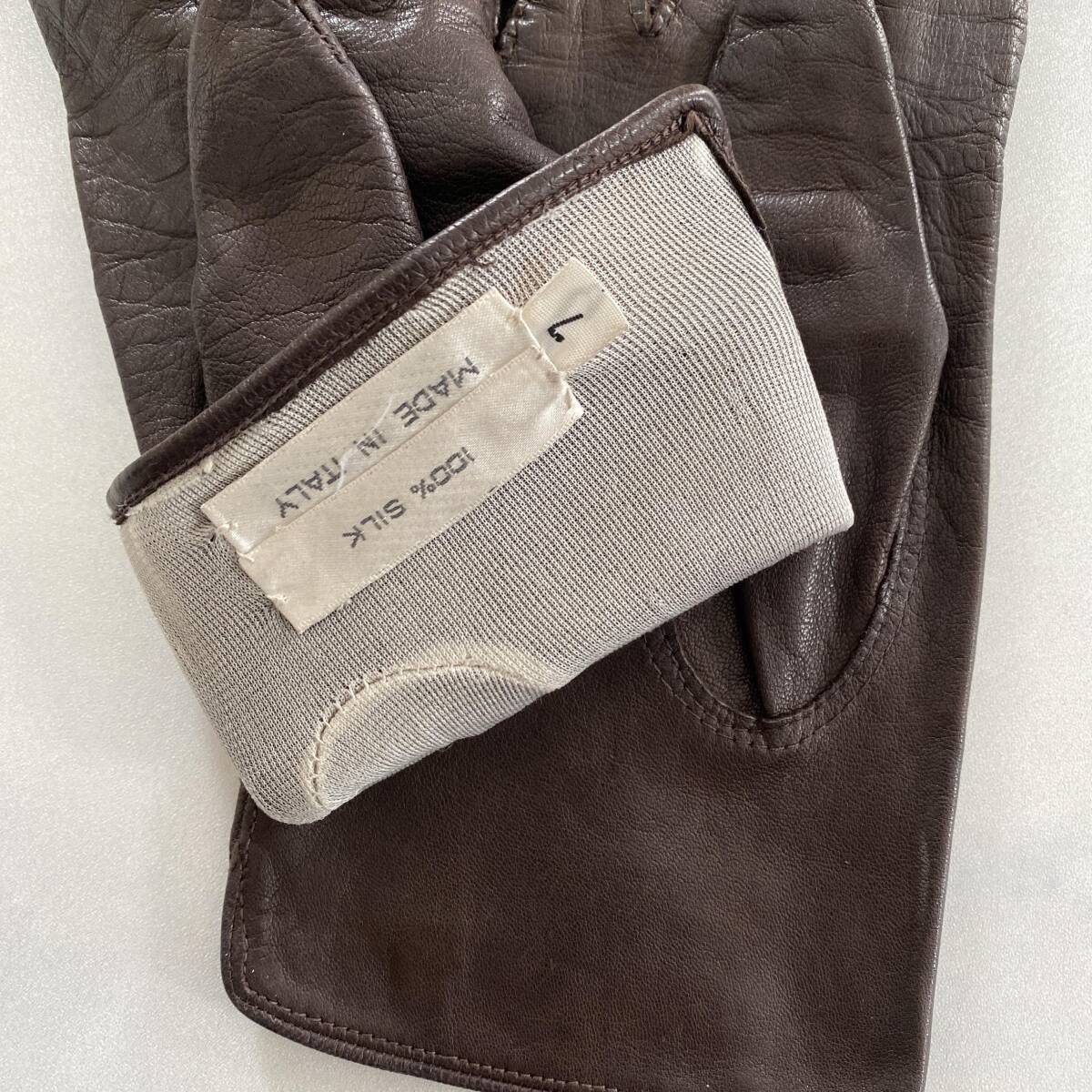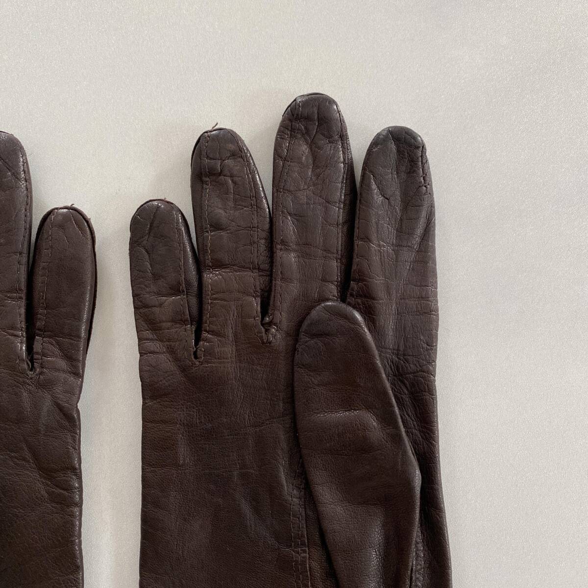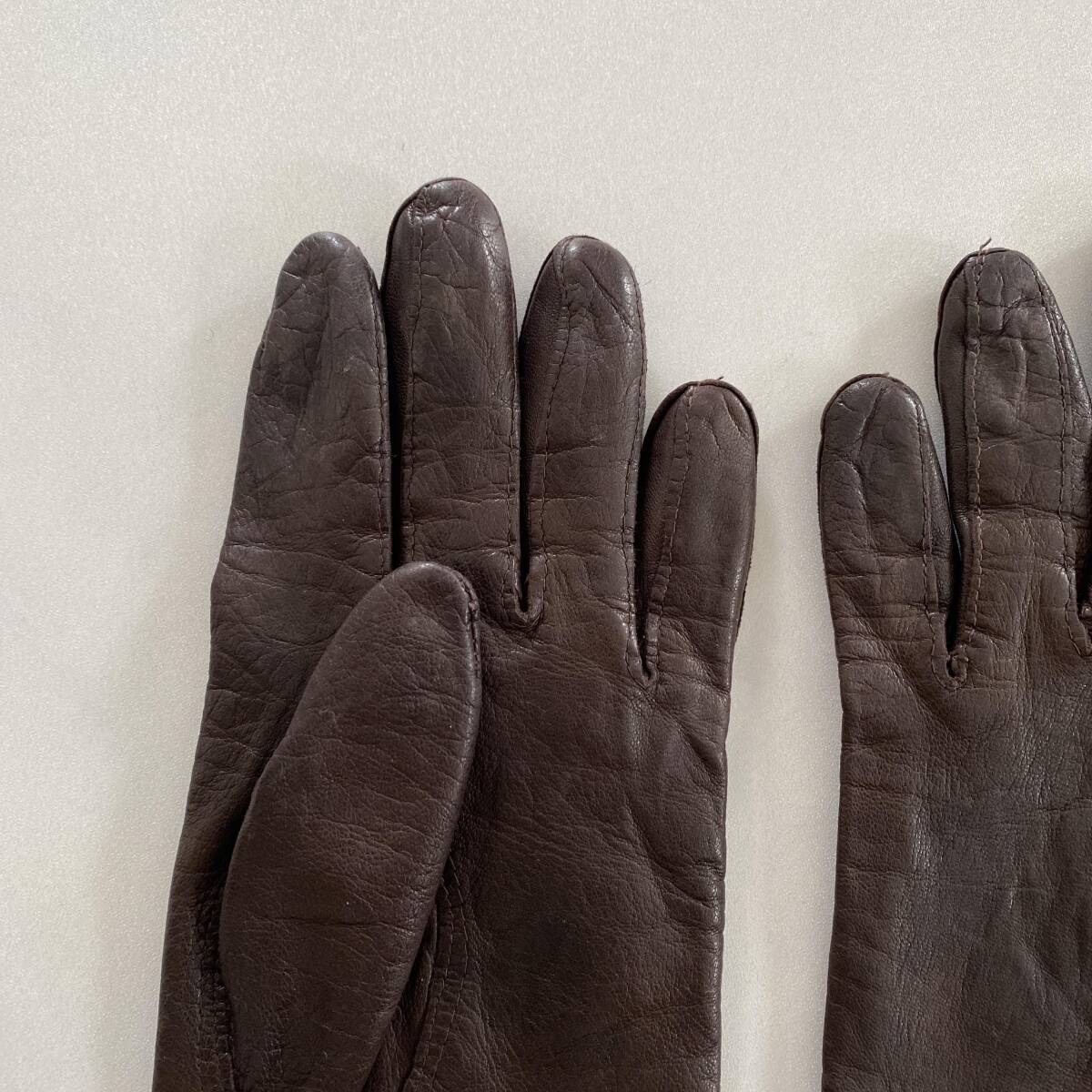 【ユーズド】COACH コーチ レディースサイズ レザーグローブ ダークブラウン 革手袋 サイズ7 シルク裏地 イタリア製
