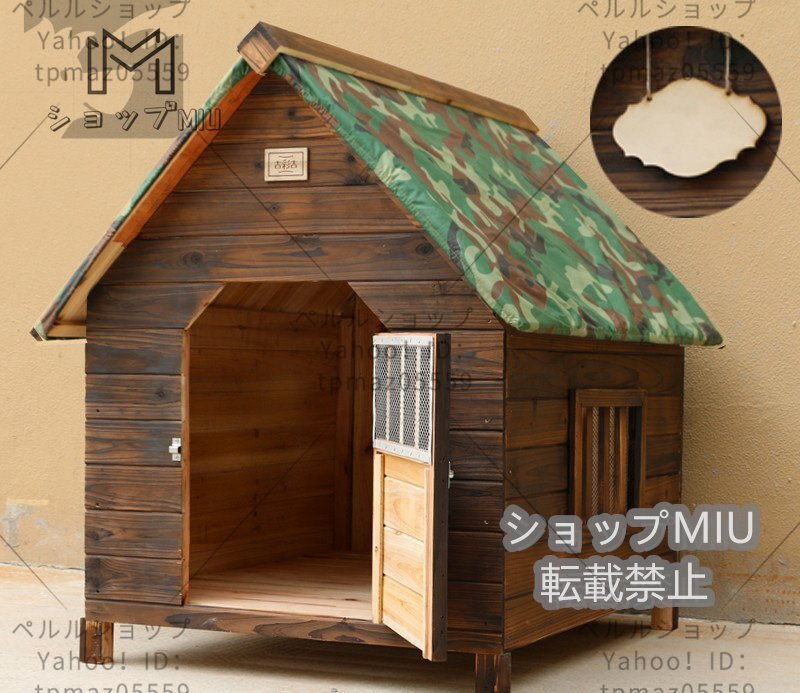 ◆高品質◆小型犬用 犬別荘 ペットハウス 犬小屋 豪華別荘 ハウス 屋外 庭用 防水 窓 ベランダ 日よけ 表札 屋上ズックカバー付属