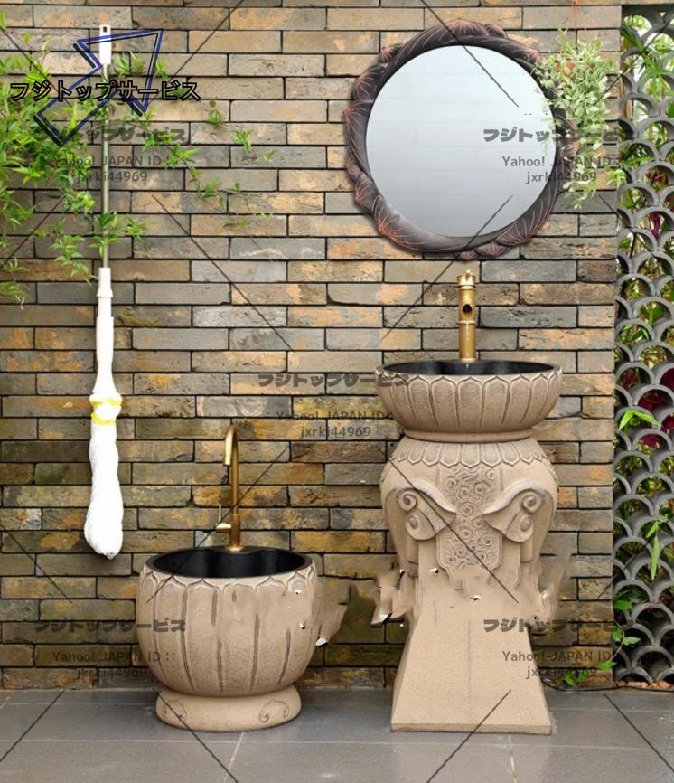 ◆稀少品◆洗面ボウル 豪華 洗面台 洗面化粧台 家庭用 手洗台 手洗い シンク 庭 ガーデン 蛇口・排水金具付き