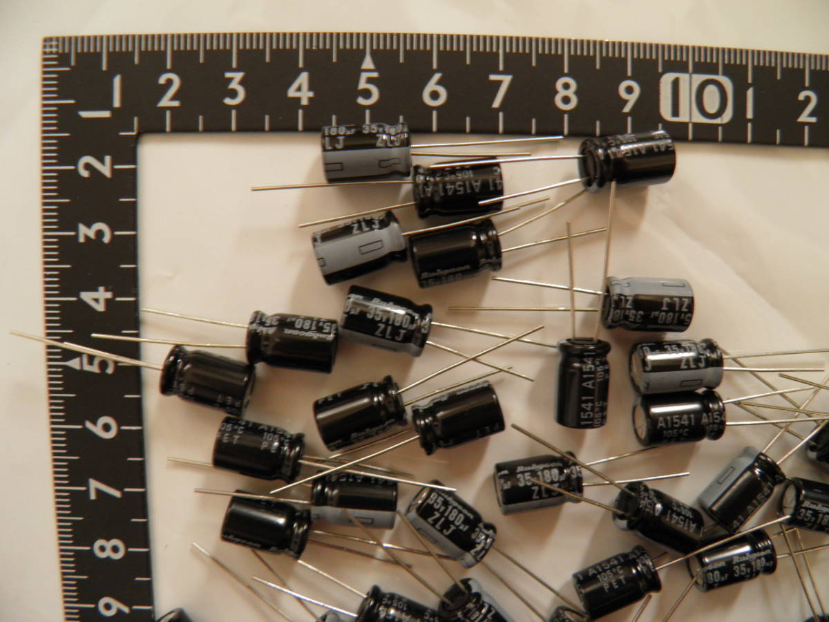 ルビコンの正規品、ZLJシリーズ電解コンデンサ35V180uFが16本1組です。低Z長寿命105℃