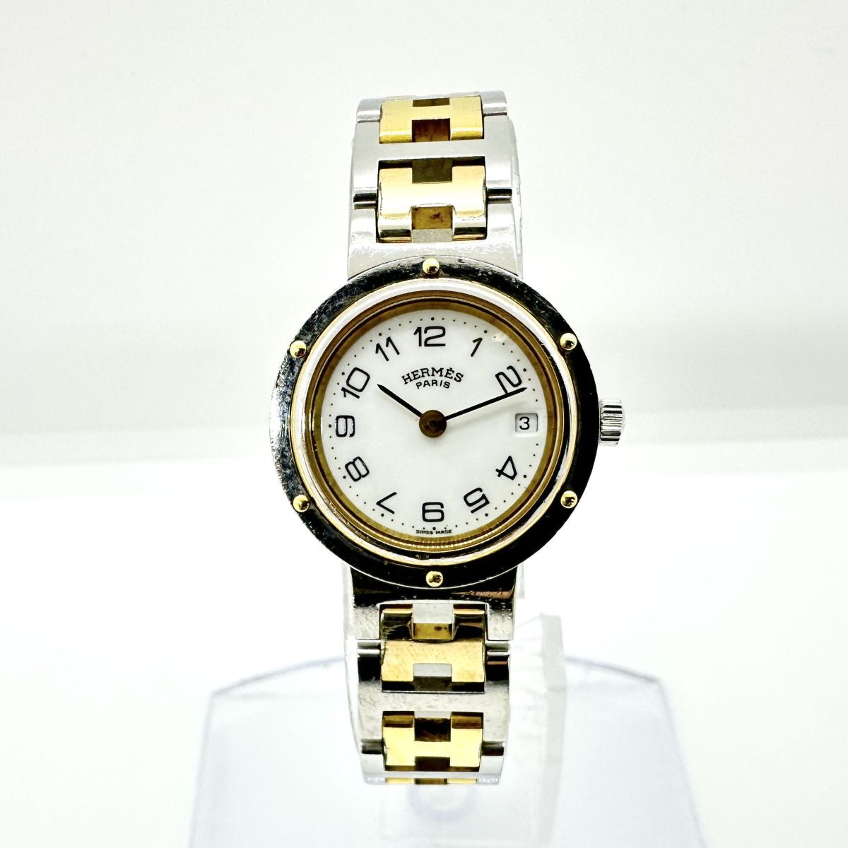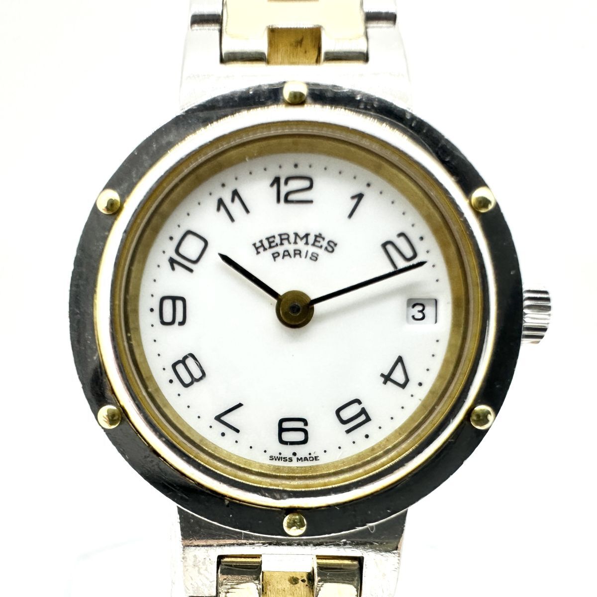 k3516 HERMES エルメス クリッパー SS GP ホワイト QZ クオーツ レディース 腕時計