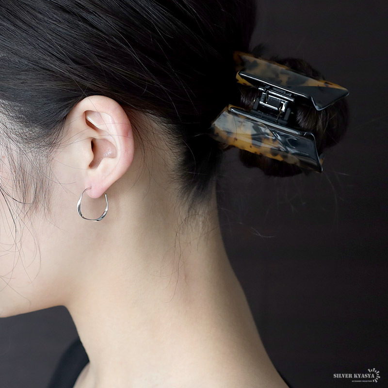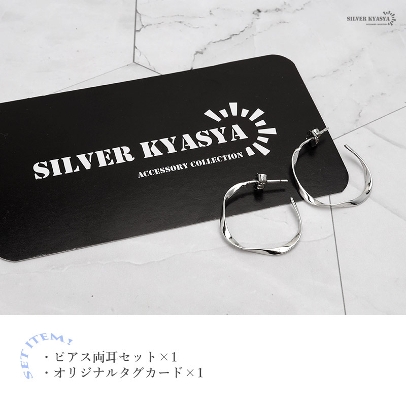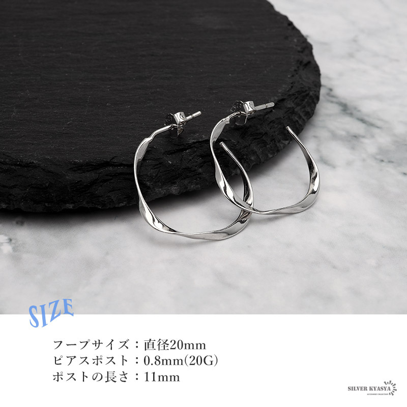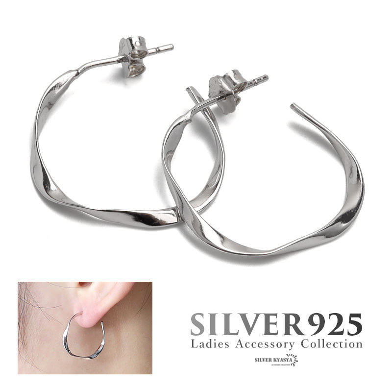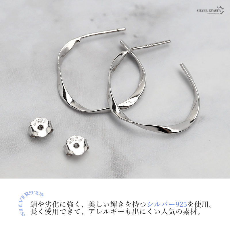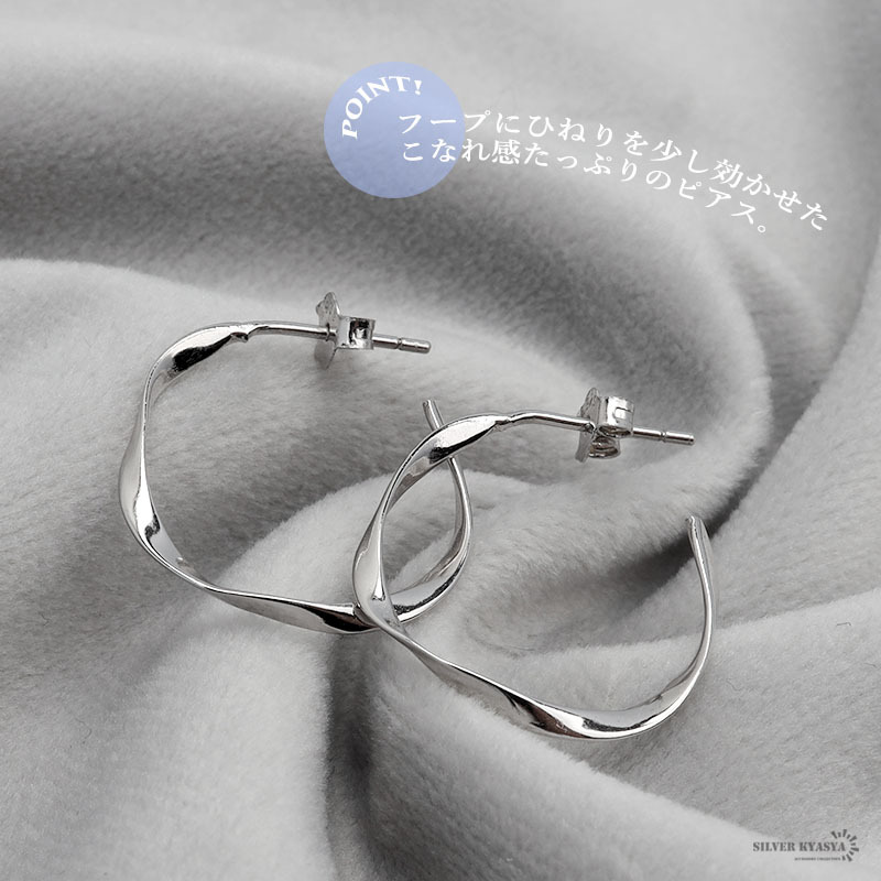 ピアス 金属アレルギー レディース シルバー925 フープピアス ひねり ツイスト シルバー 銀 両耳用 2点