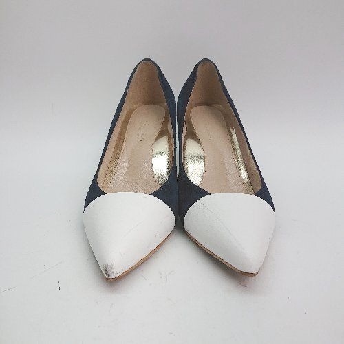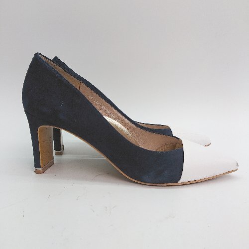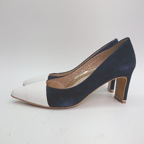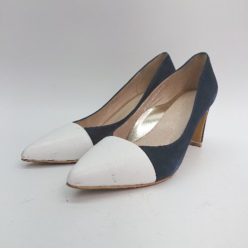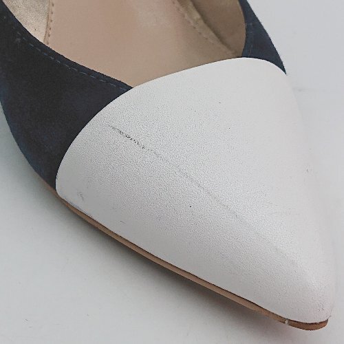 ◇ MODE ET JACOMO carino 異素材コンビ ポインテッドトゥ パンプス サイズ24 ネイビー/ホワイト レディース E