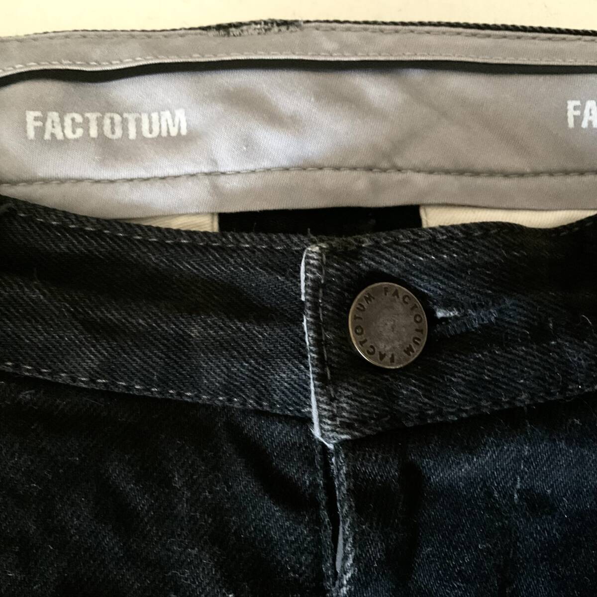 FACTOTUM ファクトタム ブラック デニム スキニー スリム パンツ 28 革パッチ パンク ロック PUNK ROCK