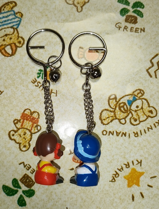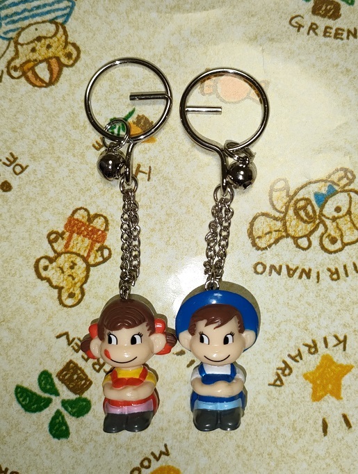 【体育座り】*レア*美品*ペコちゃん*ポコちゃん*鈴付 キーホルダー*不二家*昭和*レトロ*エモい*2種セット* |