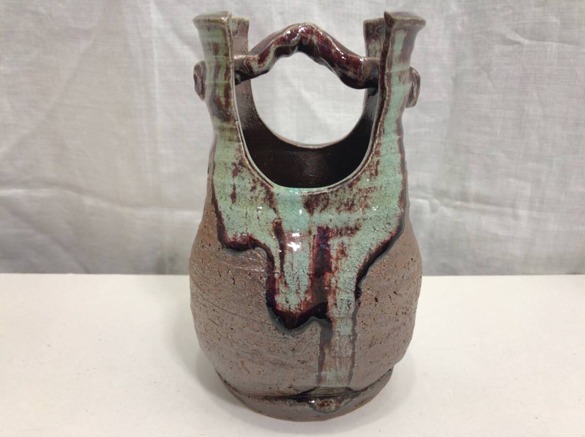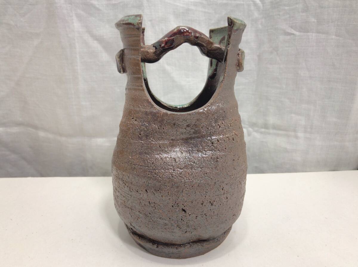 信楽焼 しがらき焼き 南蛮手桶花瓶 花瓶 花器 Q