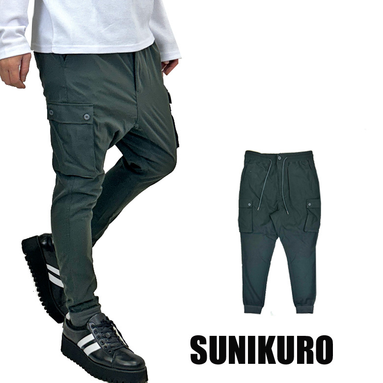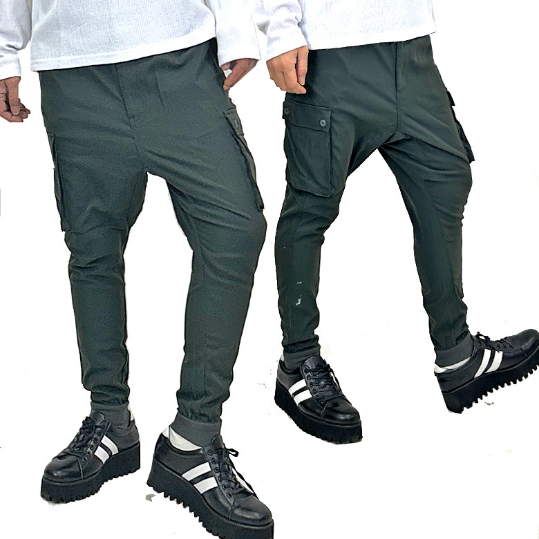 ストレッチ サルエル ジョガーカーゴパンツ 35405 細身 サルエルパンツ カーゴパンツ ジョガーパンツ 新品 チャコールM