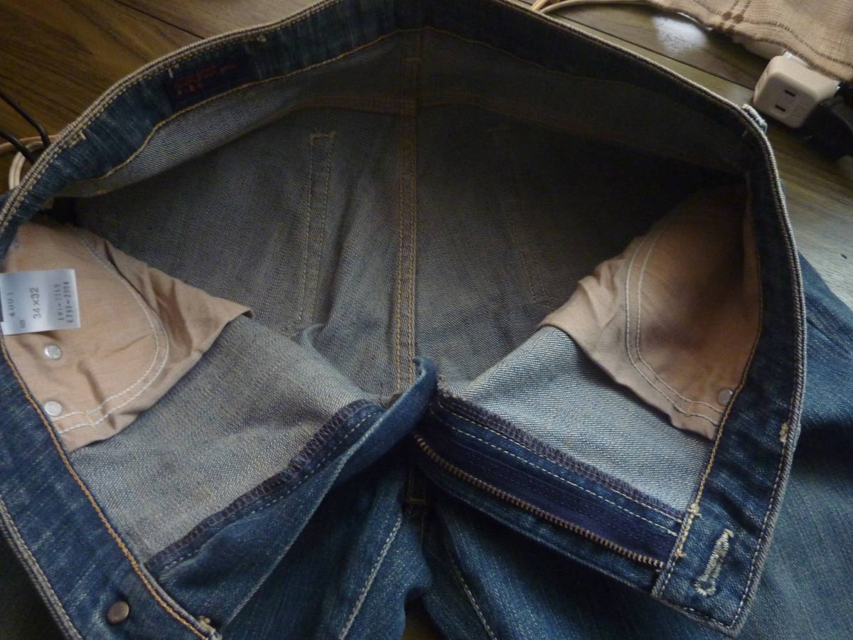 サイズ表記は34インチでウエスト幅43センチ レングス80センチ 腿幅31センチ 裾幅25センチほどになります
