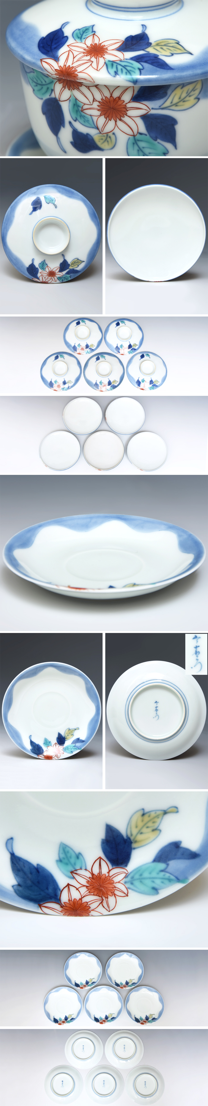 十一代今泉今右衛門 (造) 色絵花文蓋茶碗 5客 蓋物 和食器 懐石道具 現代工芸 陶磁器 有田焼 |