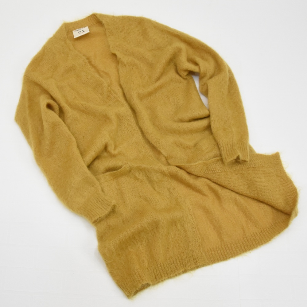 セミクチュールのマスタードカラーが目を引くロングカーディガンです。