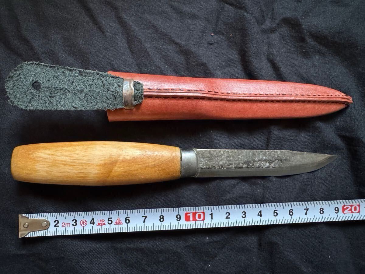 全長 約198㎜ ブレード長 約99㎜ 刃厚 約2.7㎜ ブレード材 ラミネート鋼(積層炭素鋼 ) HRC58〜60 ハンドル材 バーチ(樺)