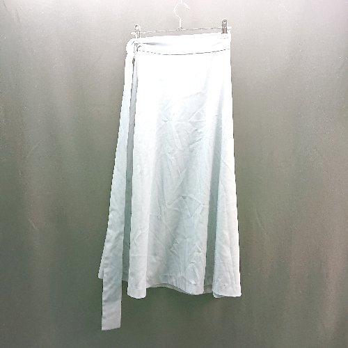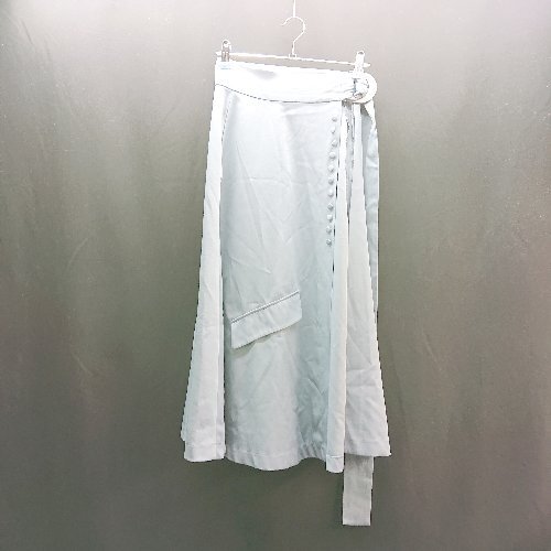 ◇ AMERI アメリ ラップ巻き 綺麗め くすみカラー シンプル ロング丈 フレア スカート サイズS ブルー レディース E