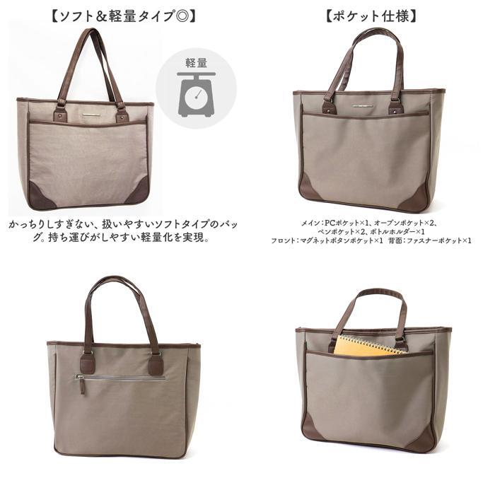 | 商品説明 | ・・【ビジネスをもっと快適に!】 ・PCやモバイル周辺機器をすっきり収納◎ソフトビジネストートが登場。 ・【ビジネスにぴったりの構造】 ・書類やファイルがサッと入る、A4B4対応のサイズ。お仕事用品と通勤の荷物をひとまとめ! ・【クッションINのPCポケットつき】 ・PCやタブレットの持ち運びにぴったりなクッションINポケットを搭載。持ち運びも安心。 ・【モバイル機器や小物を整頓!】 ・ペットボトルや傘を立てて収納できるホルダーや、小物ポケットを多数配置した高機能バッグ。 ・【スリムでスタイリッシュ☆】 ・スーツスタイルにマッチする、洗練されたシンプルさが魅力。スリムなので女性らしい印象に。 ・【ソフト&軽量タイプ◎】 ・かっちりしすぎない、扱いやすいソフトタイプのバッグ。持ち運びがしやすい軽量化を実現。 ・【ポケット仕様】 ・メイン:PCポケット×1、オープンポケット×2、ペンポケット×2、ボトルホルダー×1 ・フロント:マグネットボタンポケット×1 ・背面:ファスナーポケット×1 |