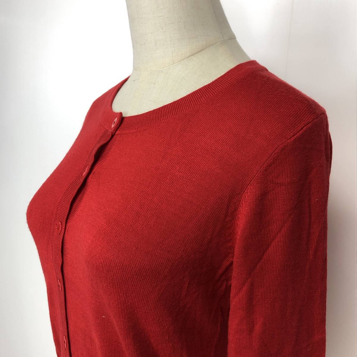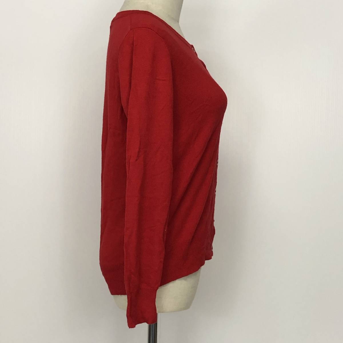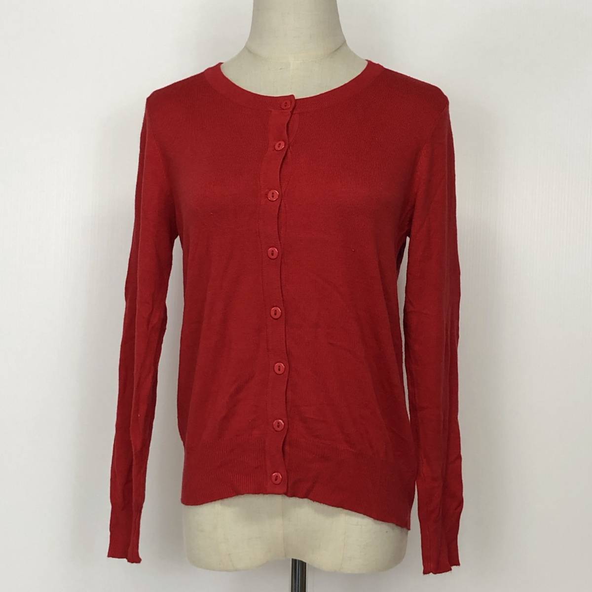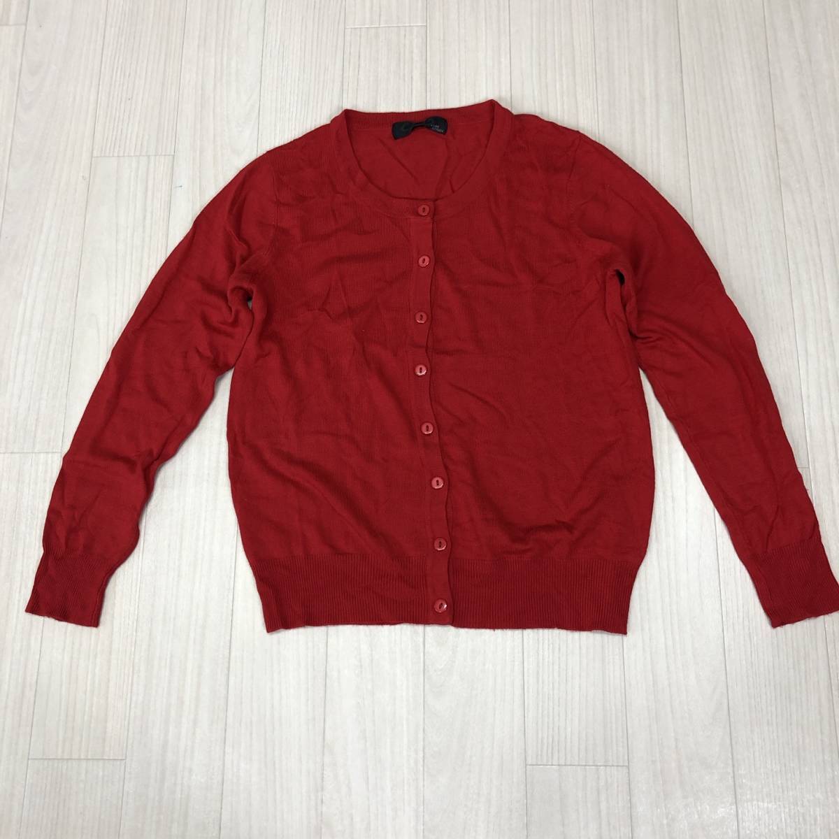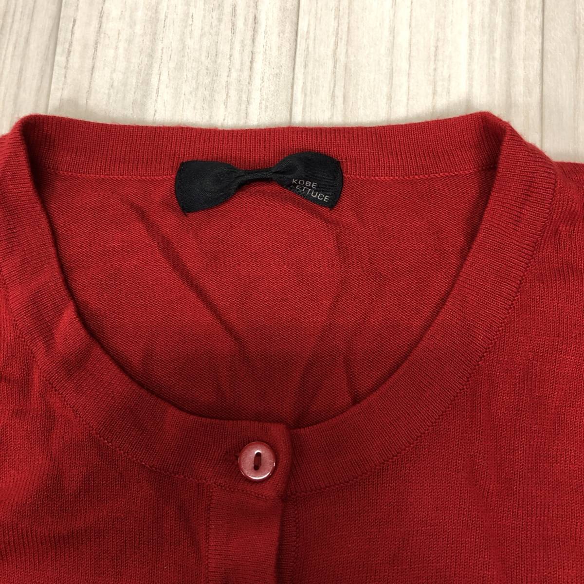 YX292 美品 KOBE LETTUCE レディース トップス カーディガン 長袖 丸首 2つ穴ボタン 薄手 伸縮 レッド 無地 あたたかキュートシンプル春秋