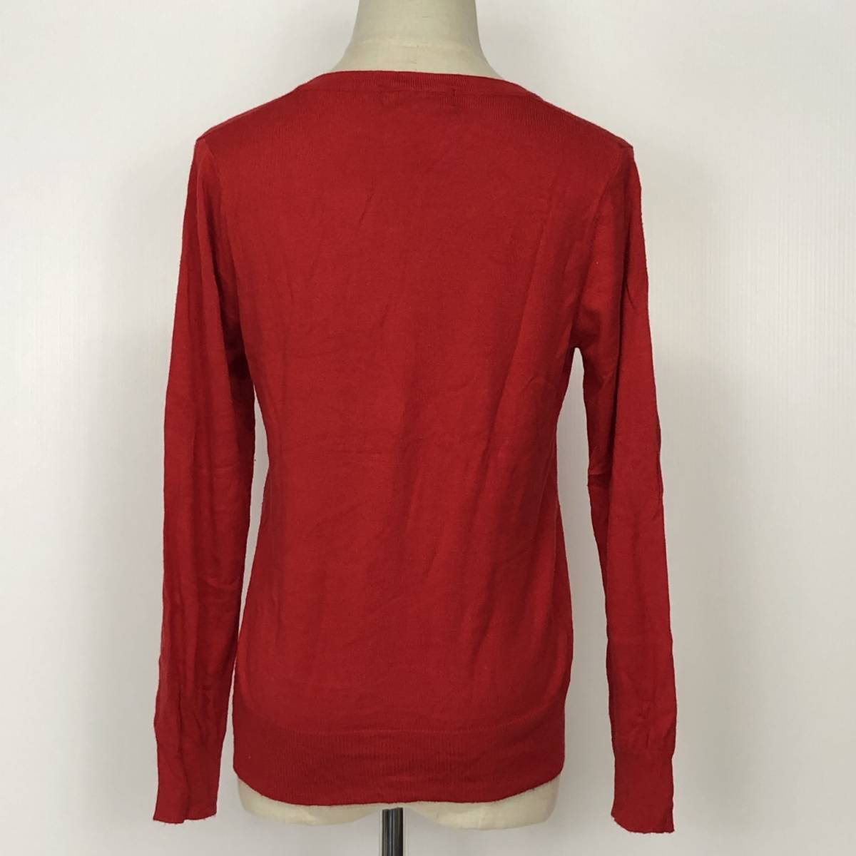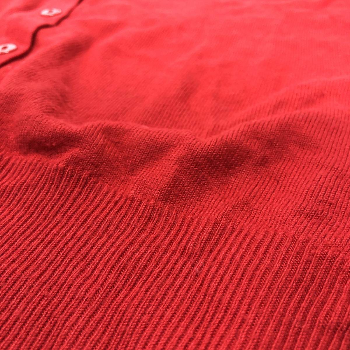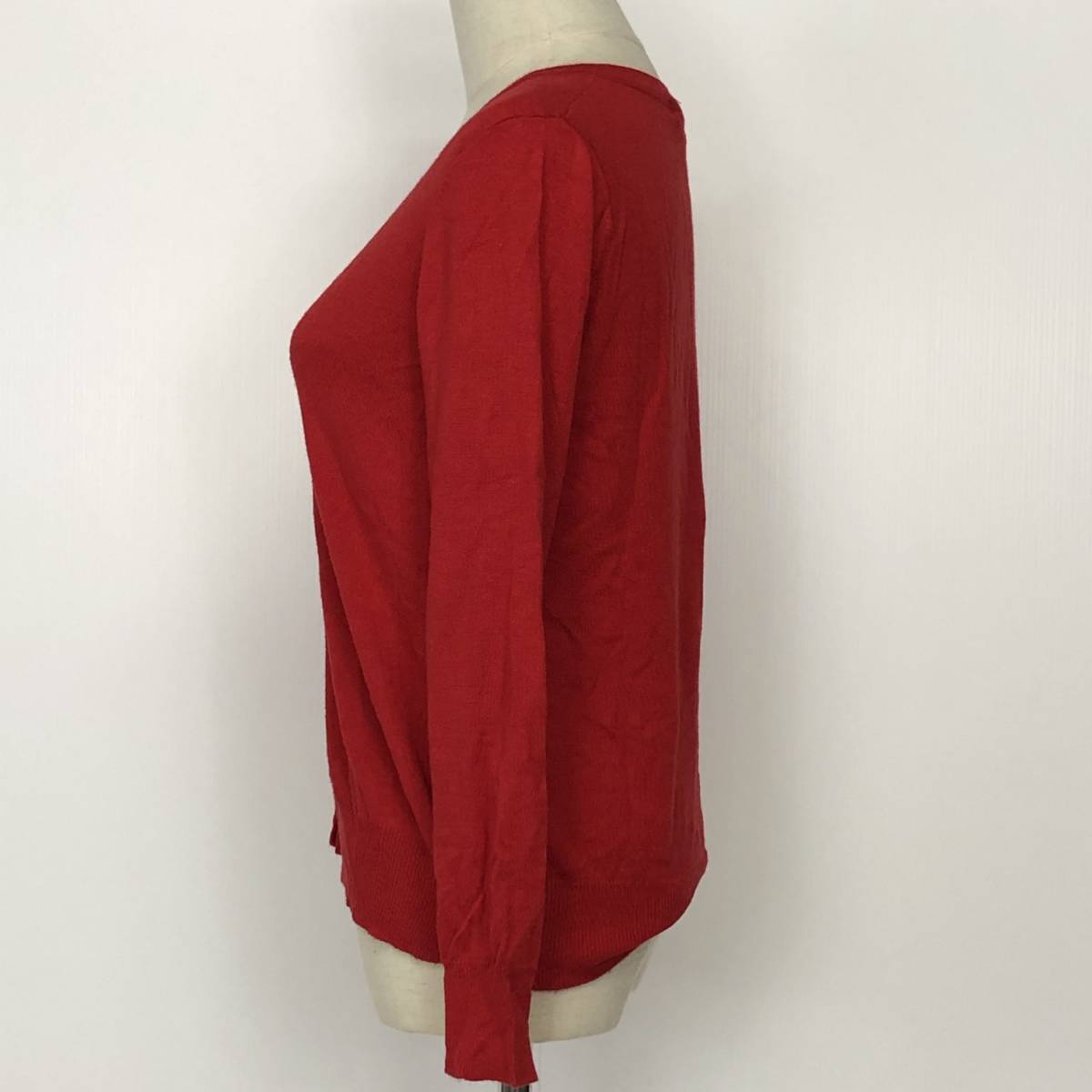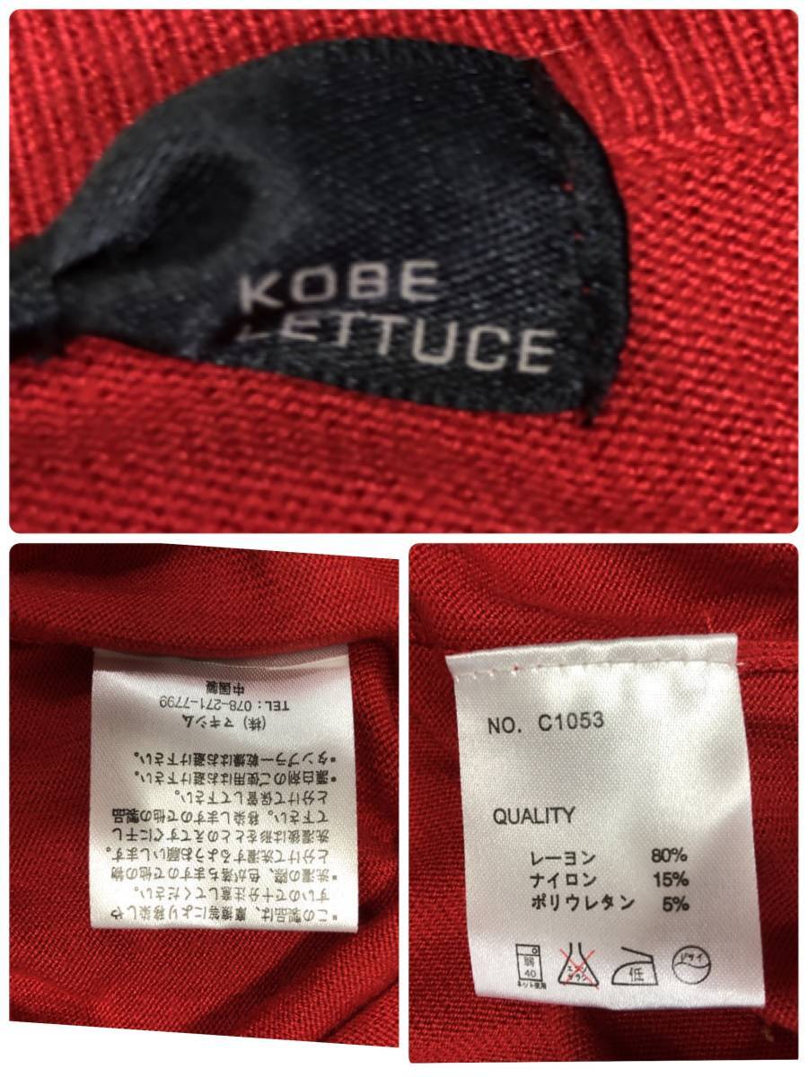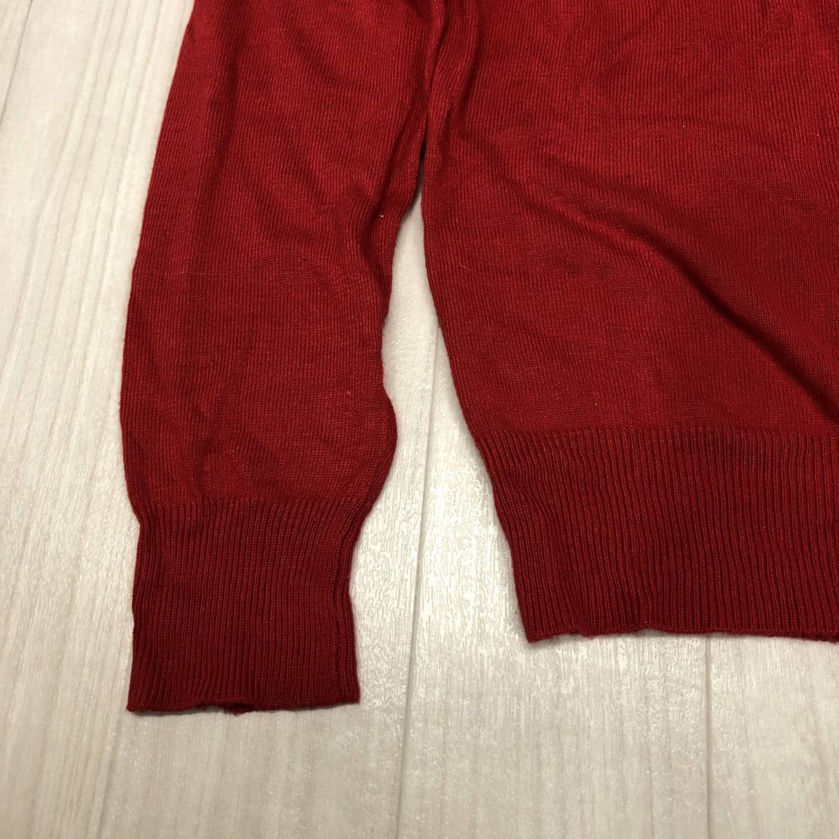 YX292 美品 KOBE LETTUCE レディース トップス カーディガン 長袖 丸首 2つ穴ボタン 薄手 伸縮 レッド 無地 あたたかキュートシンプル春秋