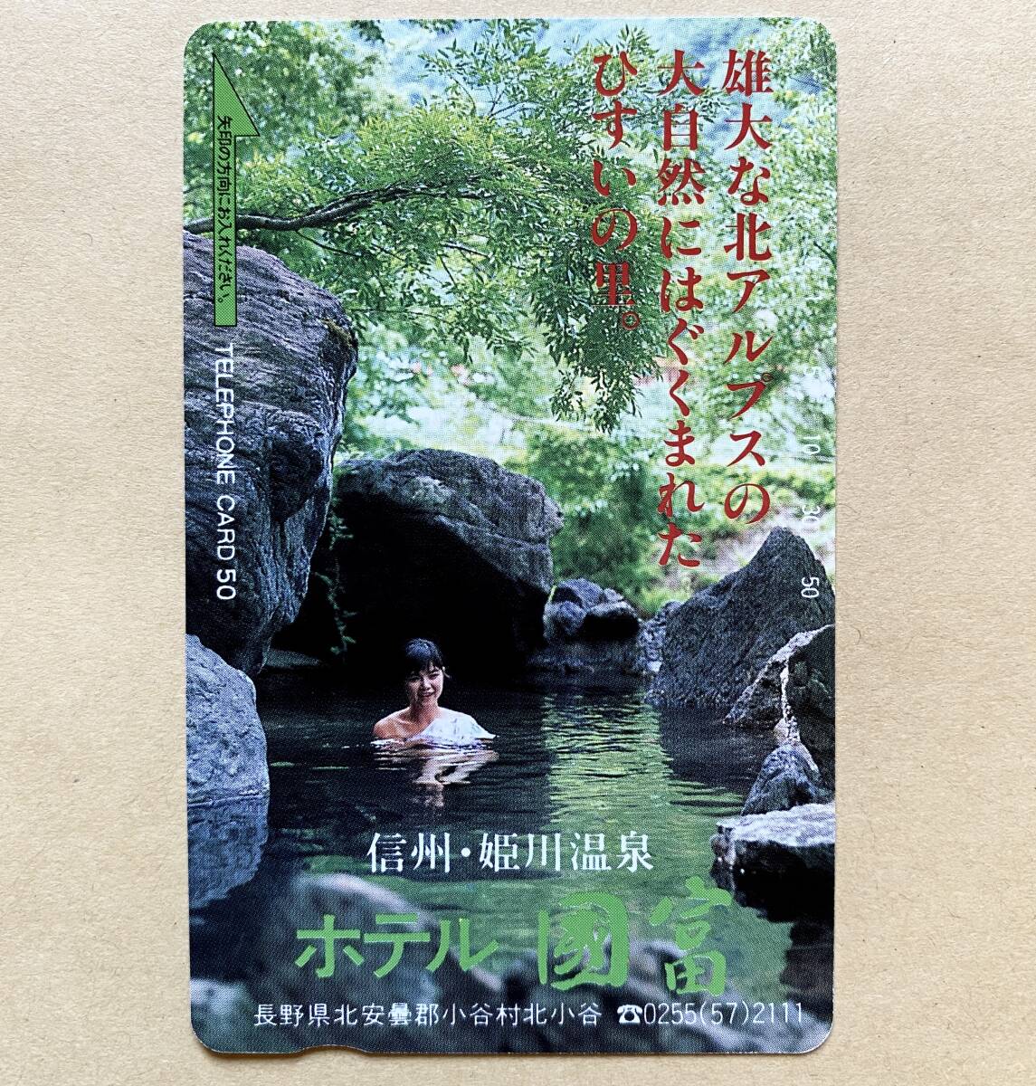 【未使用】 温泉テレカ 50度 信州・姫川温泉 ホテル國富