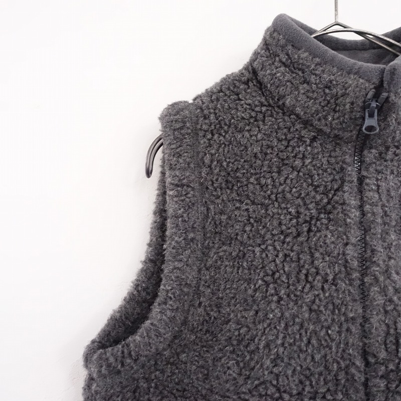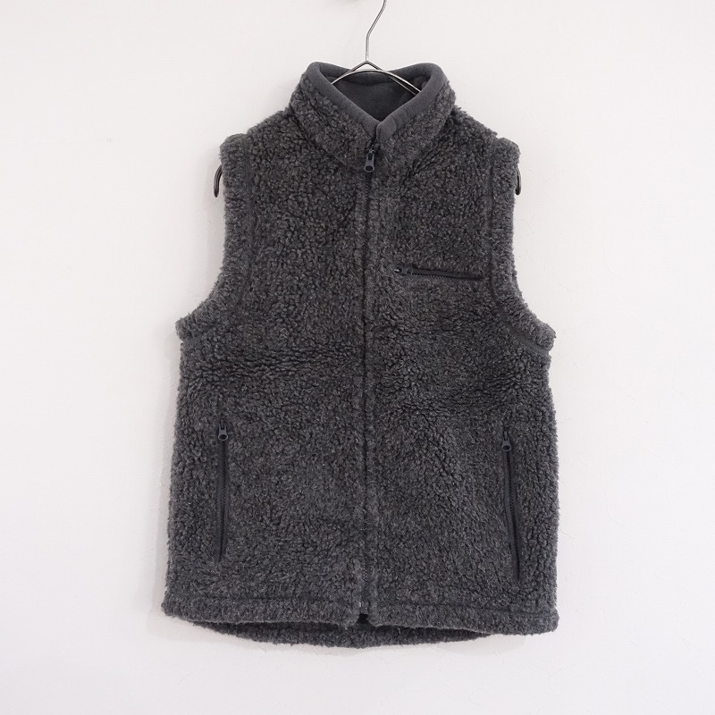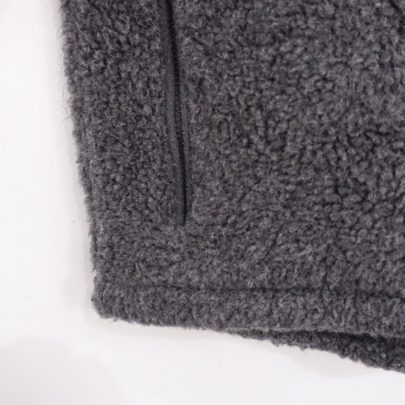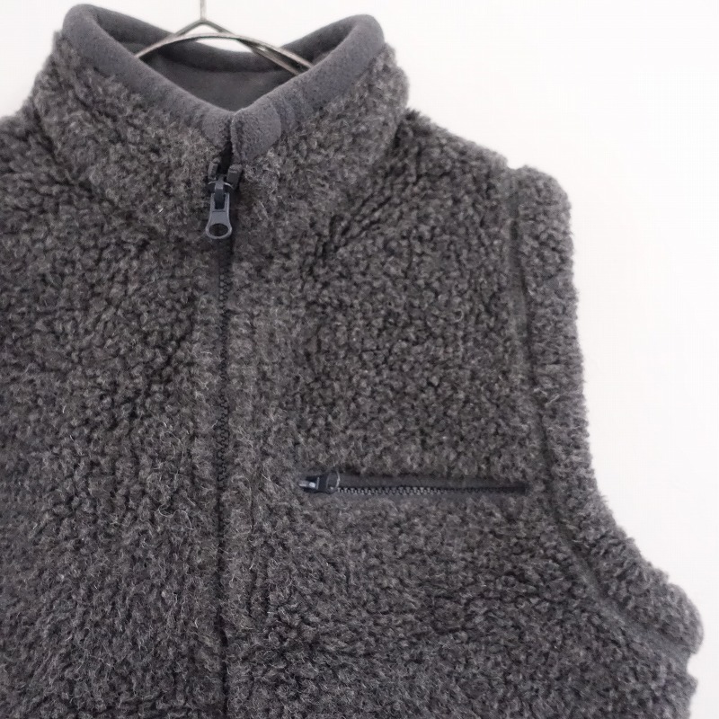 | COLDBREAKERのウールジップアップボアベストです。カラーはミックスグレーで、起毛ボア素材です。襟裏はフリース素材で、フロントジッパーで着脱でき、身頃に裏地は付いておりません。フロントにジッパーポケットが3つあり、ポケット内袋はメッシュ地です。後ろ裾はラウンドカット仕様で、少しだけ長めです。 |
